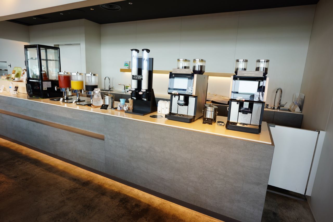 こちらはコーヒーと健康ドリンクメインのラウンジです。先述した通り炭酸ドリンクなどは別途スタッフにお願いする必要があります。
