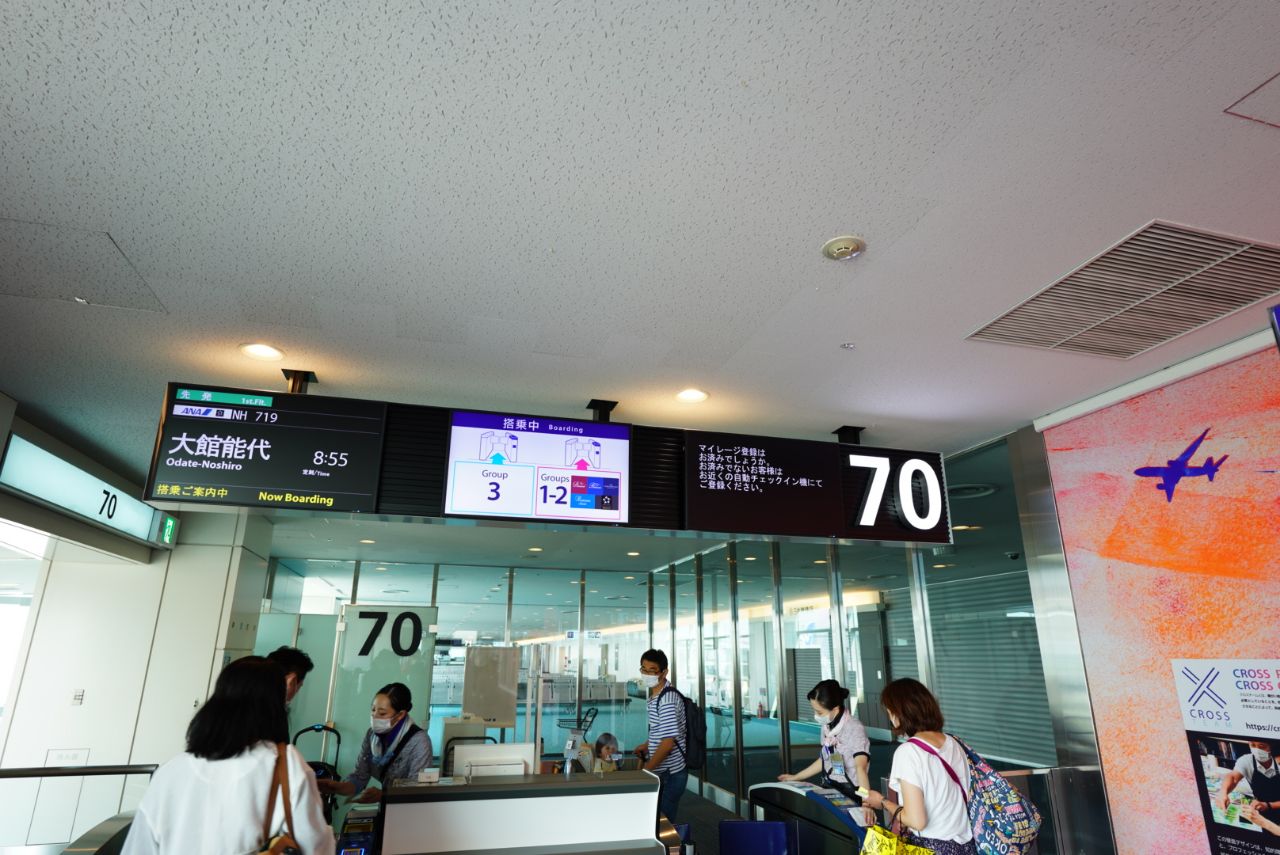 ラウンジでくつろいでいるとフォロワーが大館能代空港の往復SFC修行(SFC:ANAの上級ステータス)しているのが見えたのでエアお見送り。でも70搭乗口は端なので遠いよ……。