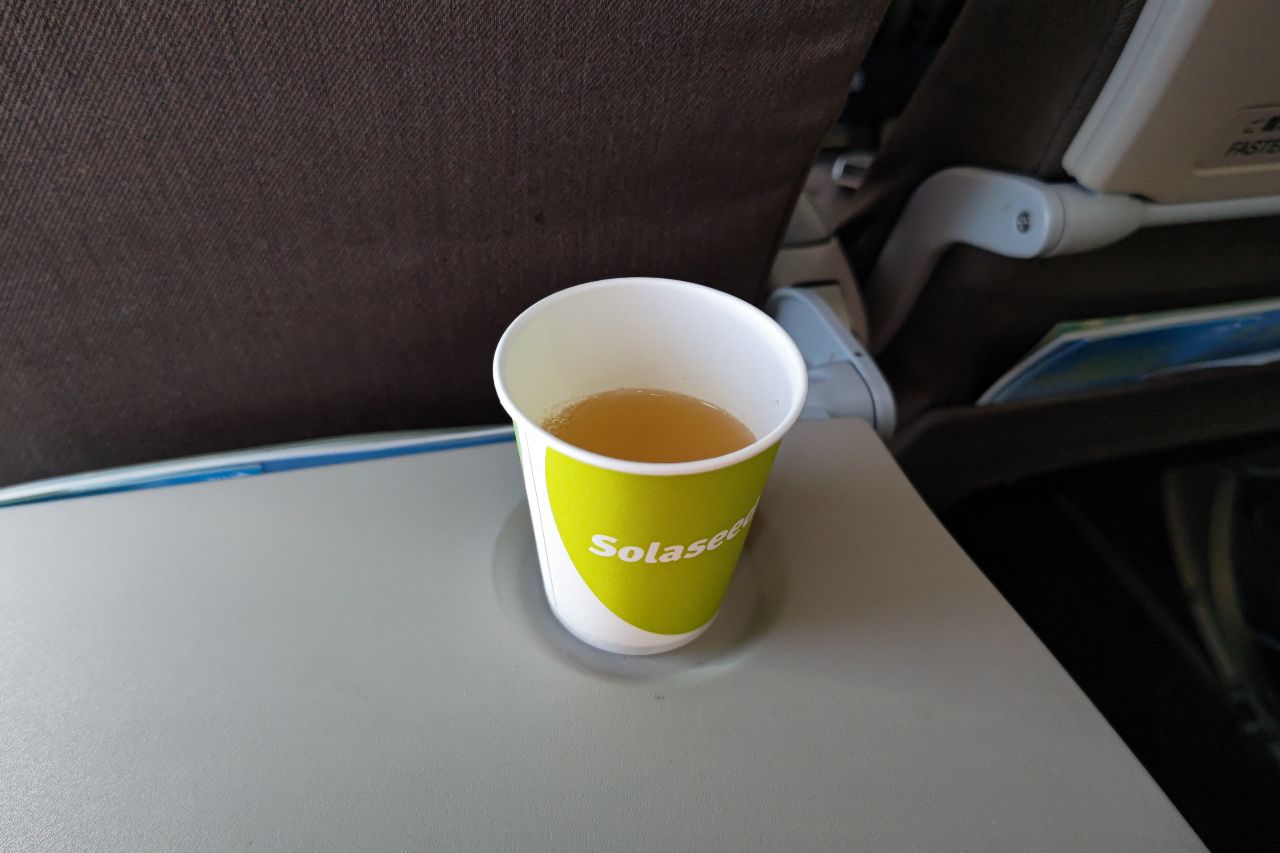また機内ドリンクは無料で提供され、ソラシドエア限定のあごユズスープが美味しいので是非飲んでみてください。
