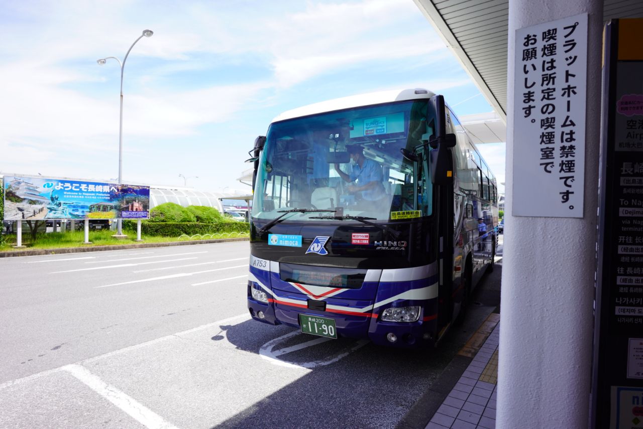長崎空港からはバスで長崎駅へと向かいます。長崎駅へは2つの系統があり、どちらも運賃1,000円なのですが、5番乗り場は(左写真)市内直行便、4番乗り場(右写真)のは昭和町経由便となっています。