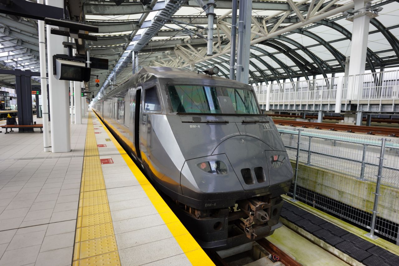 今回乗車するのは787系で通称「黒いかもめ」と呼ばれている列車です。逆に858系は「白いかもめ」と呼ばれてます。この列車は昔「つばめ」という列車で使われていたのですが、転用されてかもめになりました。