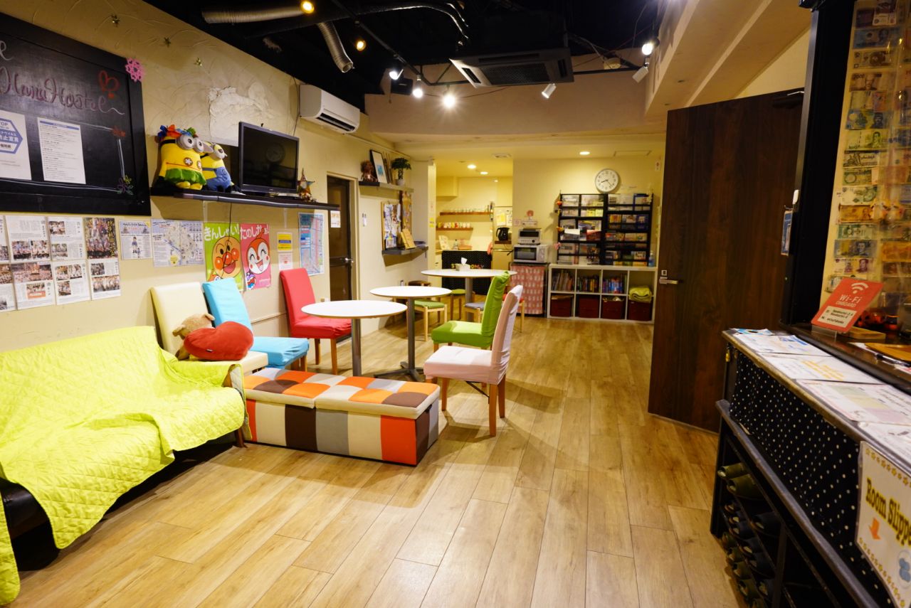 広々としたフロントと共用スペース。冷蔵庫などは共用となってます。