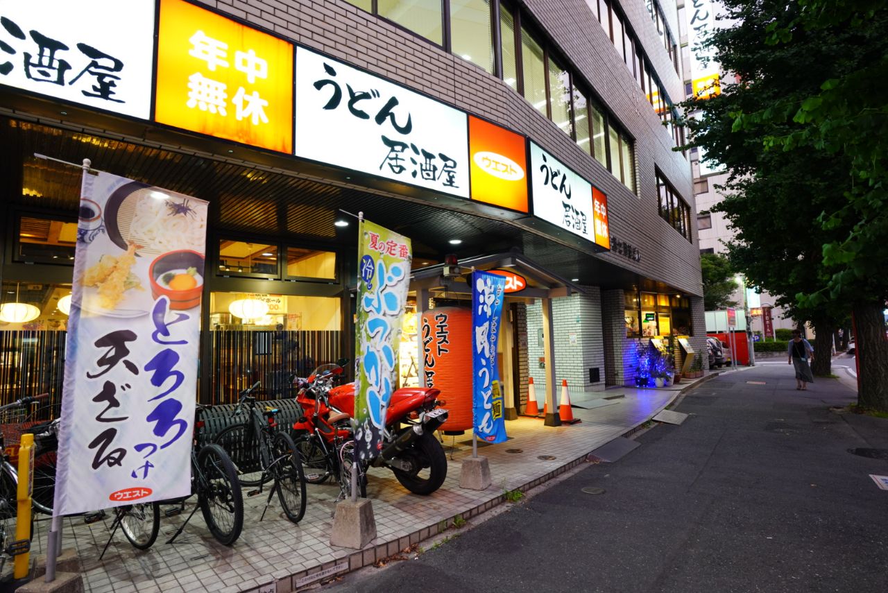 夕食をどうしようかなと考えつつやってきたのはウエスト。福岡で有名なうどんチェーン店です。