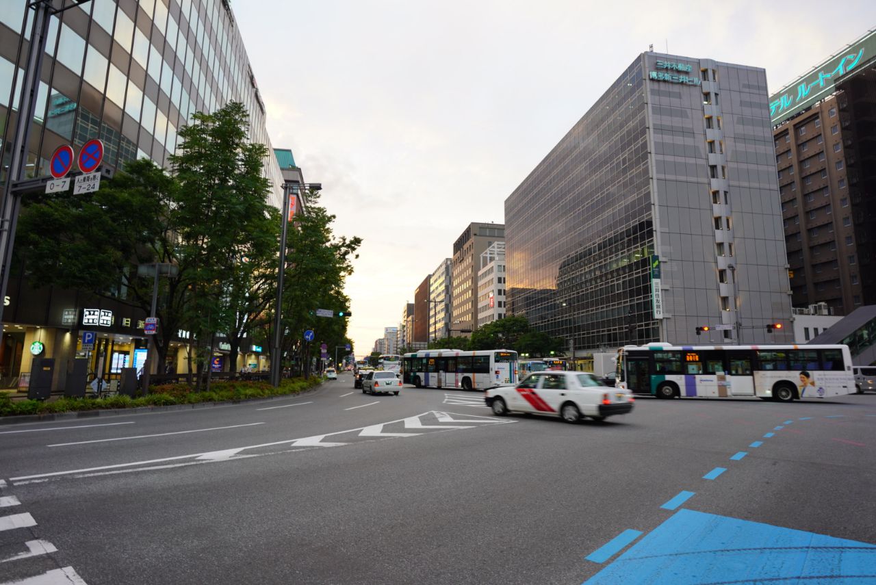 博多駅を出るとまだ夕焼けが見えるほどには明るい時間。日が伸びたのもありますが、九州だからというのもあるかもしれません。