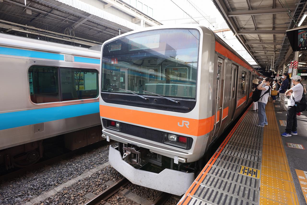 列車はE233系。乗り換えるとやっぱりE231系なんで長々と乗る椅子じゃないと痛感します。E231系の椅子だけでもE233系と交換してほしい。あれこそ苦行です。