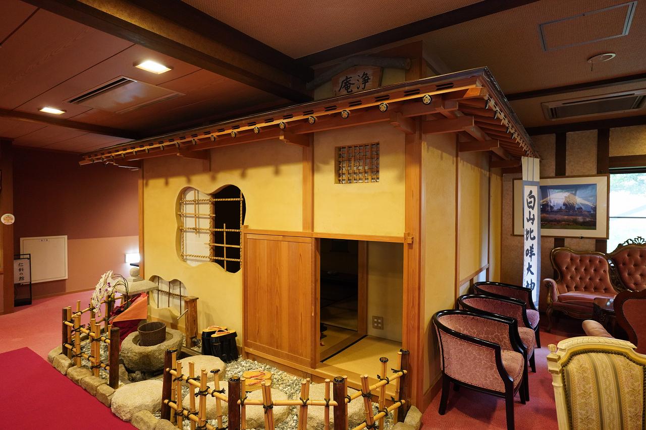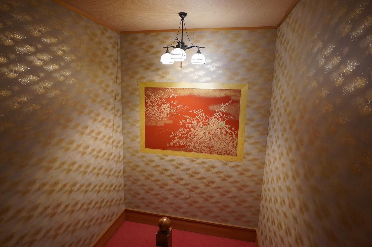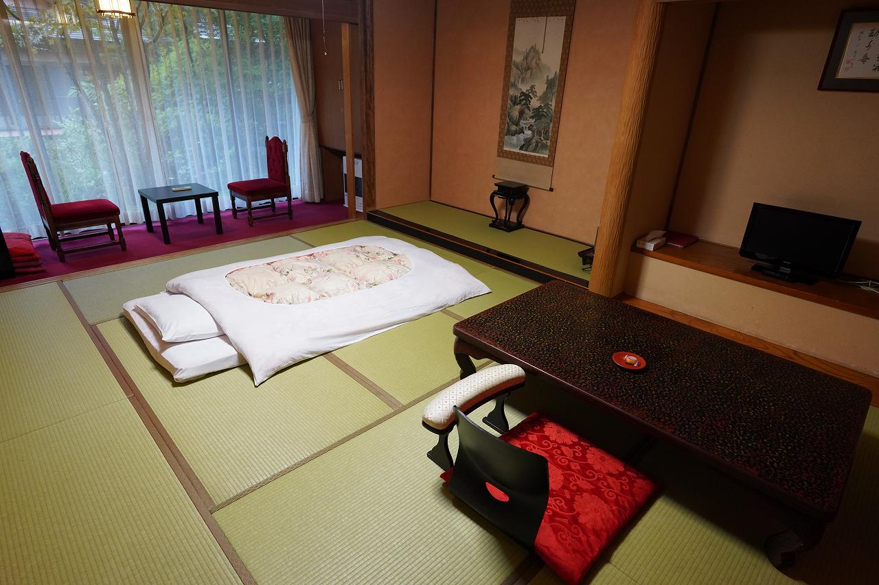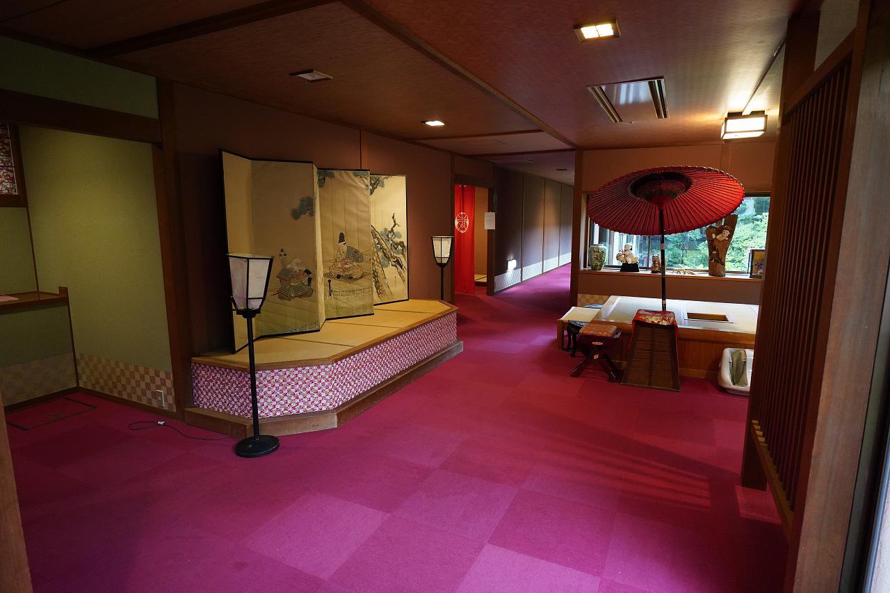 館内はこんな感じ。この低い入口の部屋は茶室だとは思うんですが、何かに使っているのでしょうか。他にも全体的に高級感たっぷり。でも宿泊費は1名2食でも1万円ちょっととそんなに高くはないので、雰囲気味わうにはぴったりです。