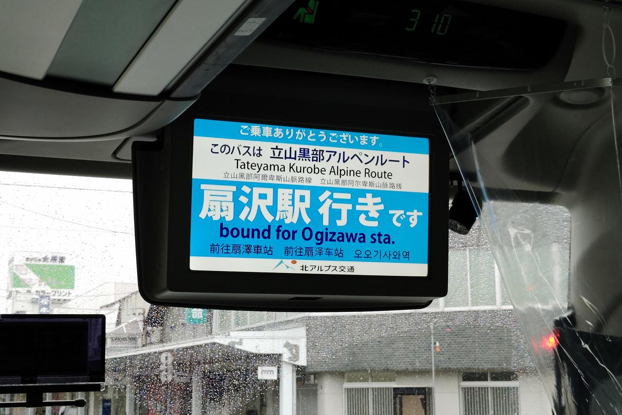 バスはアルペンルートの入口「扇沢駅」行きなのですが、この時間から行く人もいないのか乗客は私以外ゼロ。貸切状態ですが、逆に帰りのバスはそこそこ乗ってくるのでしょうかね。