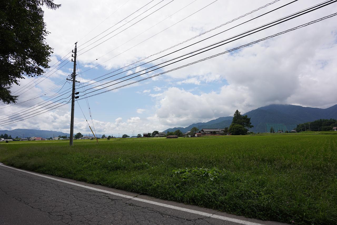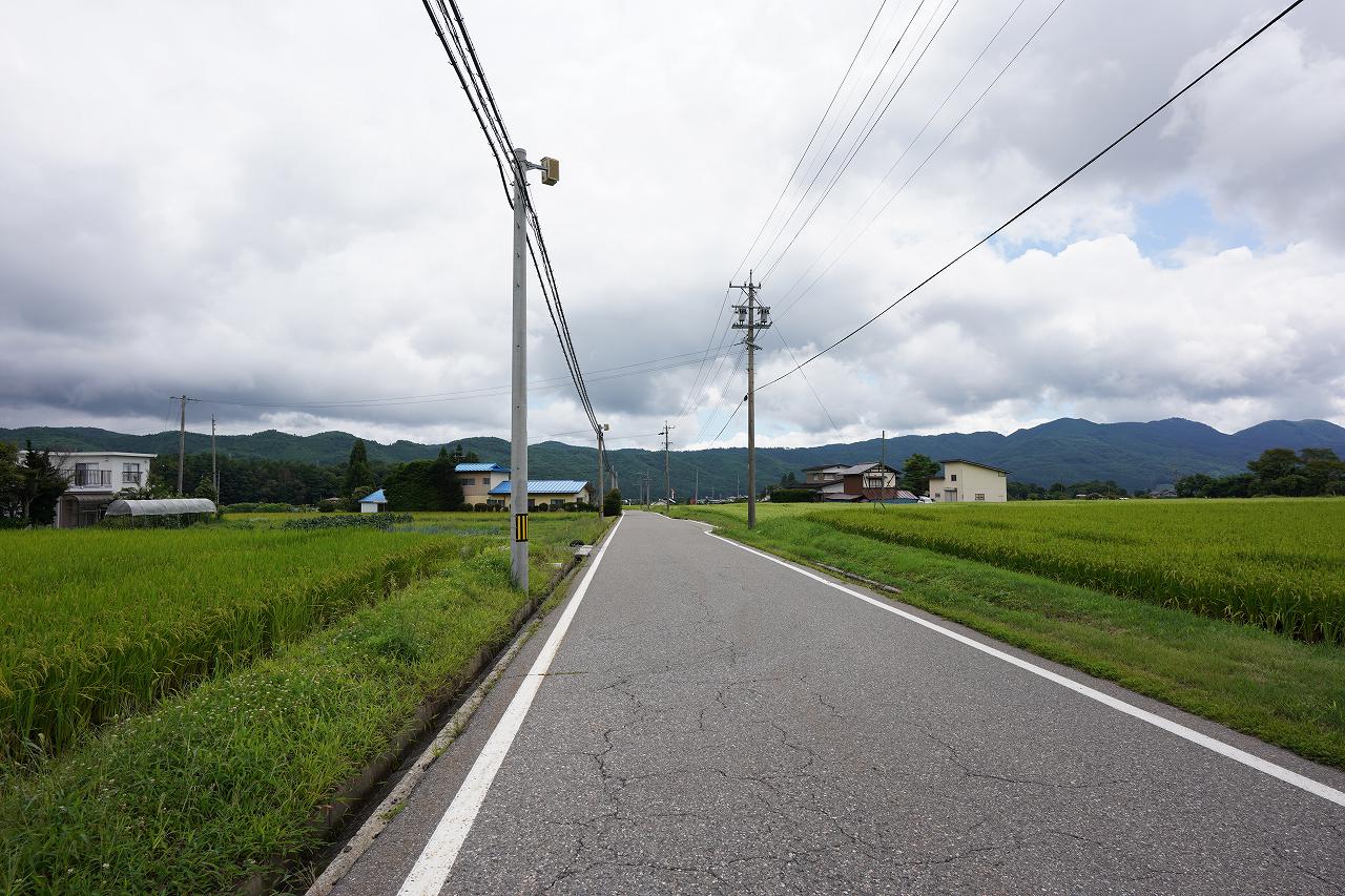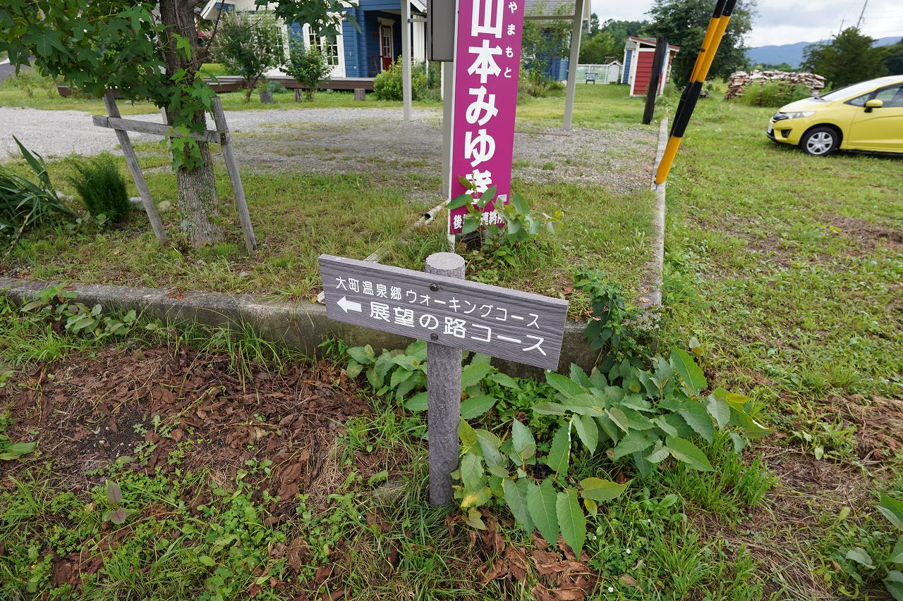 「大町温泉郷ウォーキングコース」と書かれた道を進みます。道中は花があったりとのどかな光景が左右に見えます。こういう田舎道を歩くのって好きなんですよね。