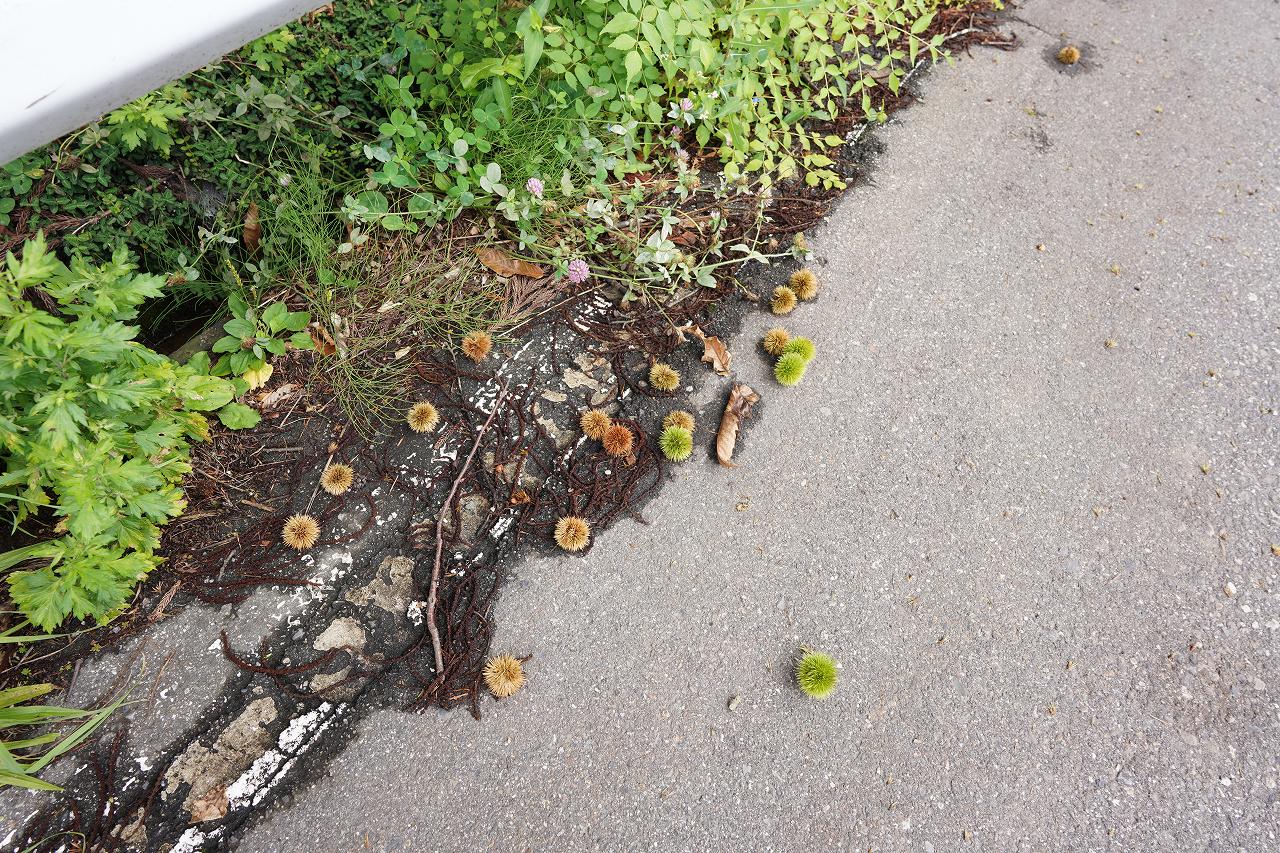 道路の脇に栗が落ちてました。そういえばそろそろそんな時期ですよね。栗ご飯とか食べたいなぁ。