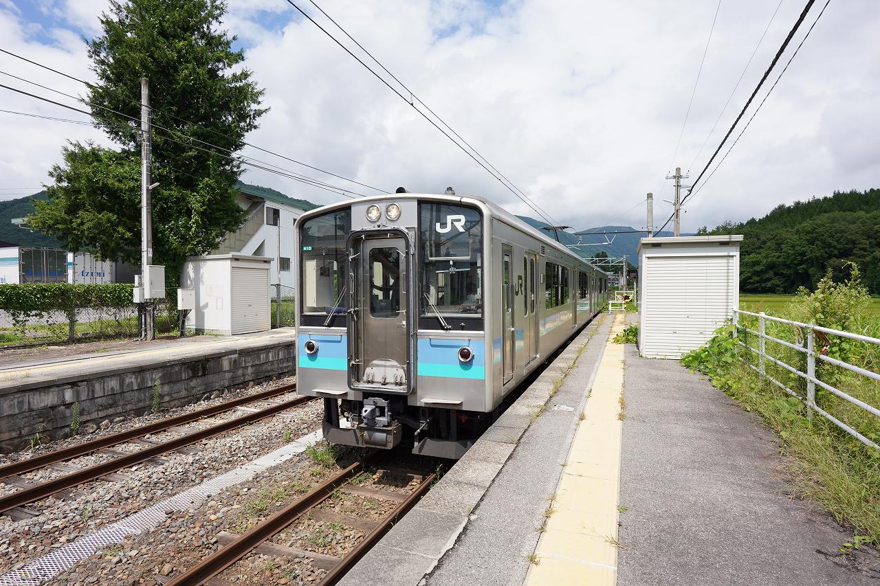 列車はE127系100番台の列車。ガラガラかな?と思ったら乗客はいっぱいで立って信濃大町へ。西日本区間ばっかり見られて「閑散大赤字路線」って印象が大きい大糸線ですが、南小谷以南は比較的混雑しているんですよね。