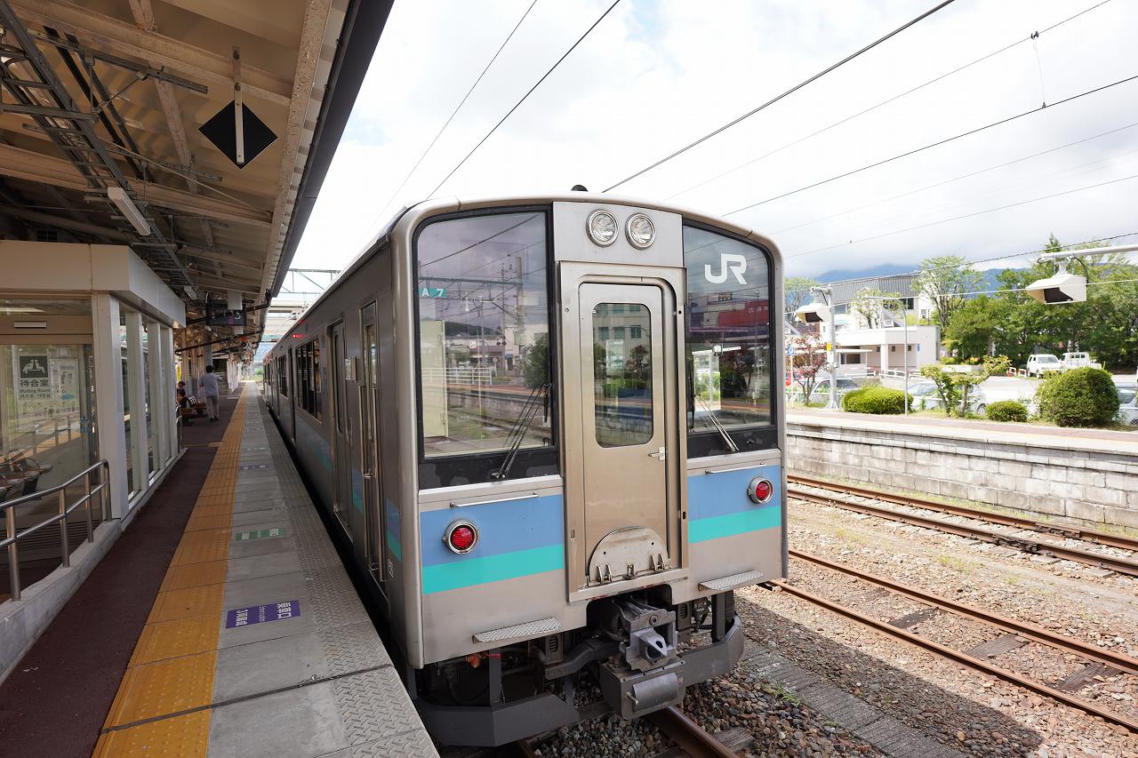 それでは列車に乗っていきましょう。大糸線は一部の列車を除いて「松本⇔信濃大町」と「信濃大町⇔南小谷」という2つに分断されていて、信濃大町で接続列車があるという運用になっているため、一旦信濃大町まで乗車していきます。