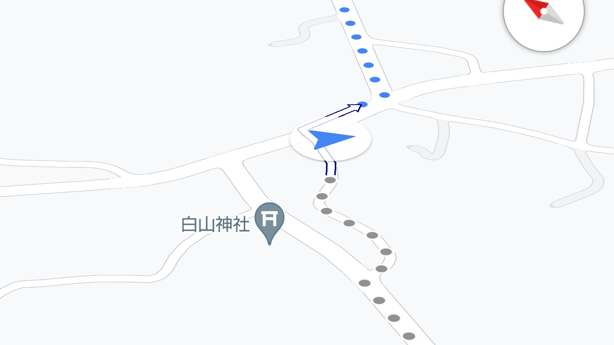 途中Googleマップを見ながら進むと、なんかクネクネした道を通れと。しかしこれどう見ても人ん家な気がするんですが……。なので直角に曲がるコースに迂回して進むことに。こういうのがあるんですよねGoogleマップって。