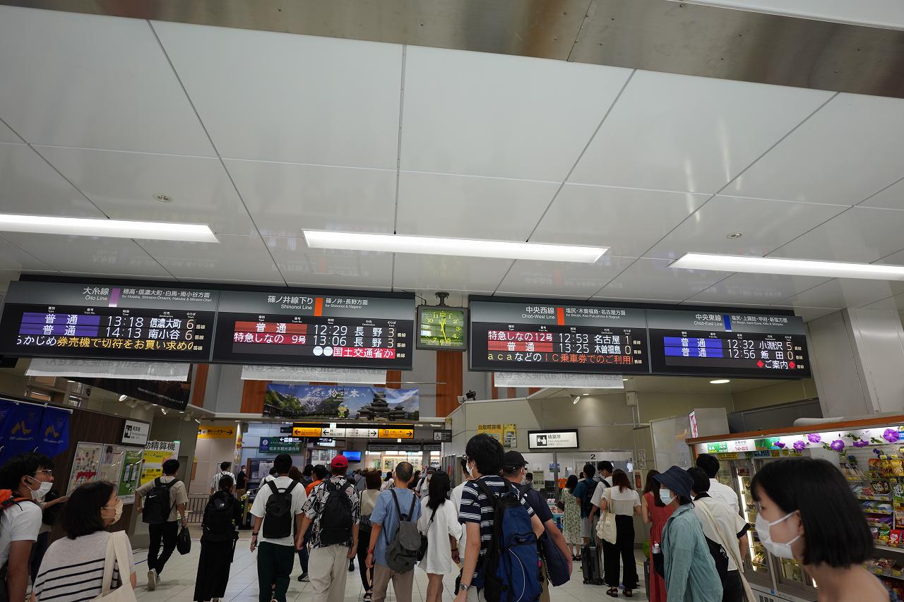 松本駅に戻ってきました。行きは高尾から松本まで一気に来ましたが、帰りは何回か乗り換えして帰っていきます。まずは上諏訪まで。