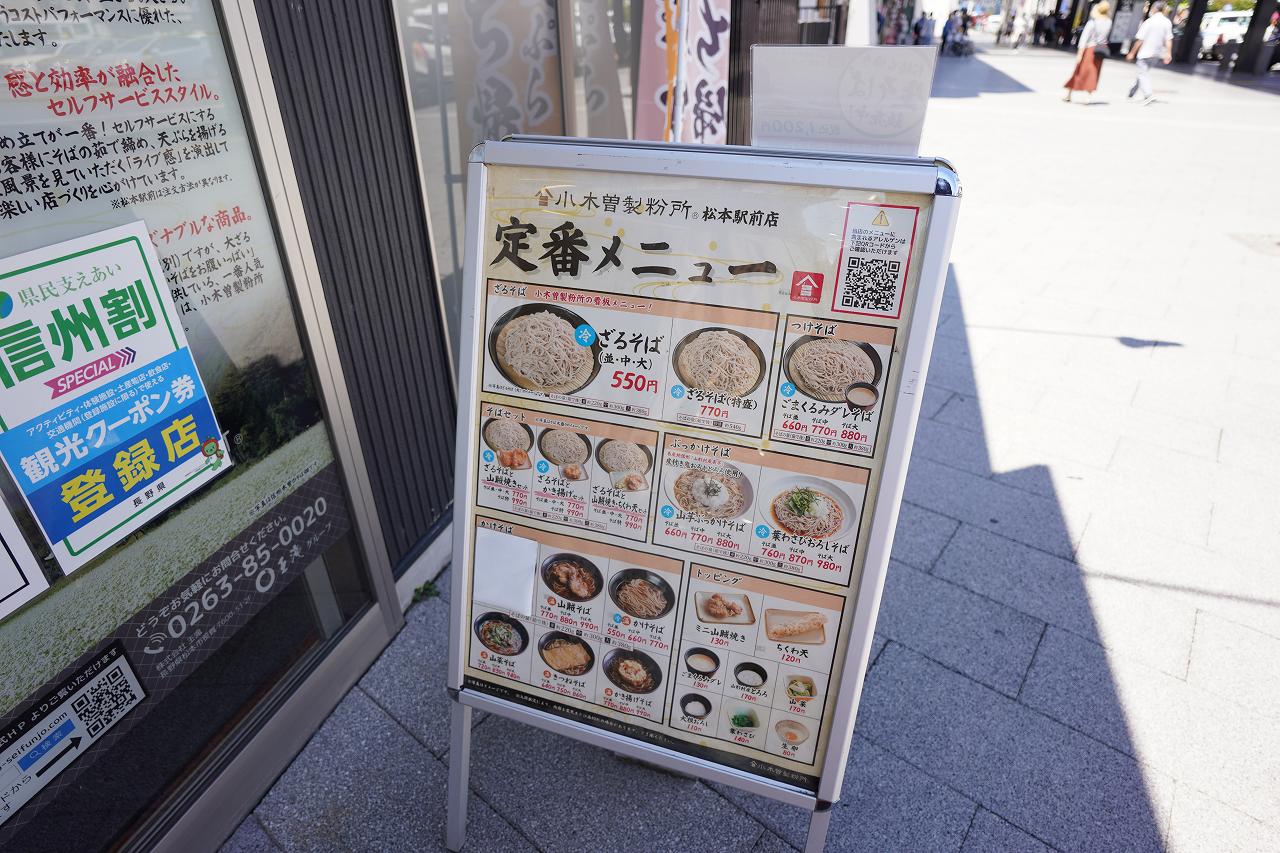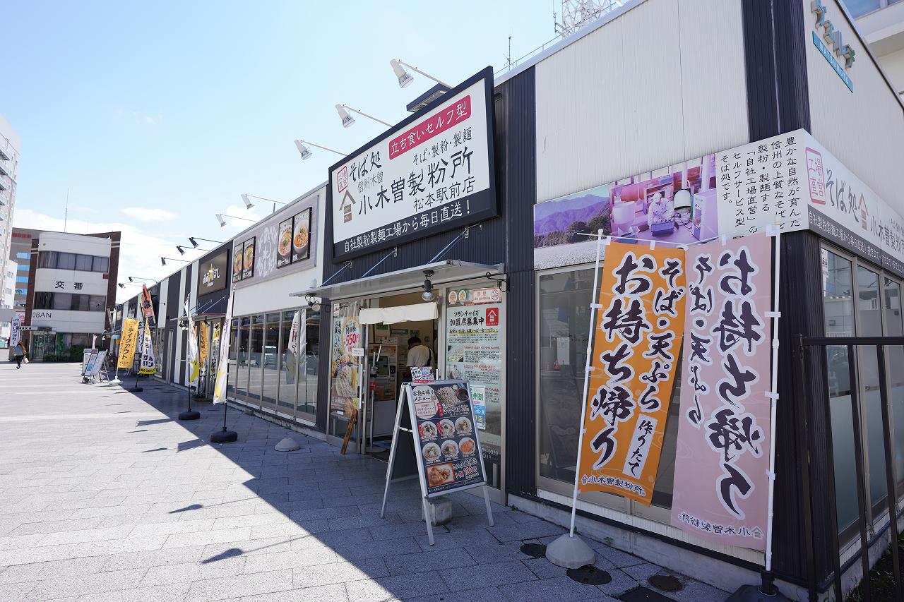 松本駅を出て左手に行くと並んでいるお蕎麦屋さんがあるのですが、目的地はその先にあるこのお店。立ち食いのお店ですが、製粉所直営なので美味しいおそばが食べられます。