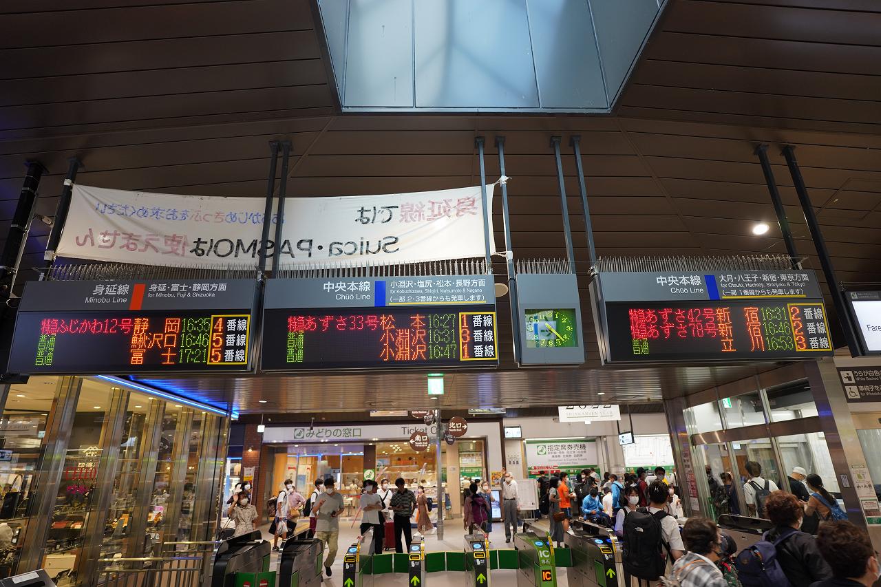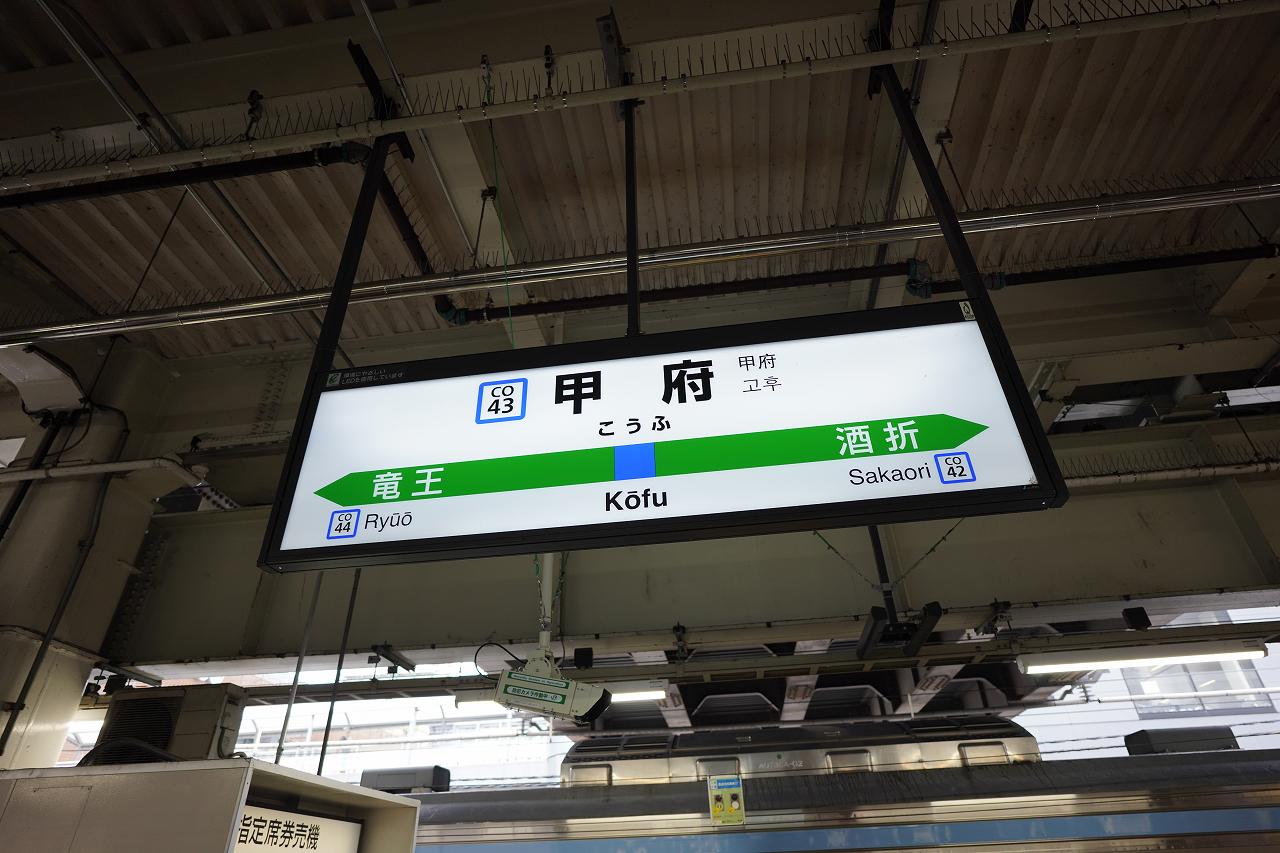 甲府駅に到着。甲府まで来ると感覚的には「沼津」に着いたのと同じような感覚ですね。ここから新宿までは大体3時間くらいでしょうか。