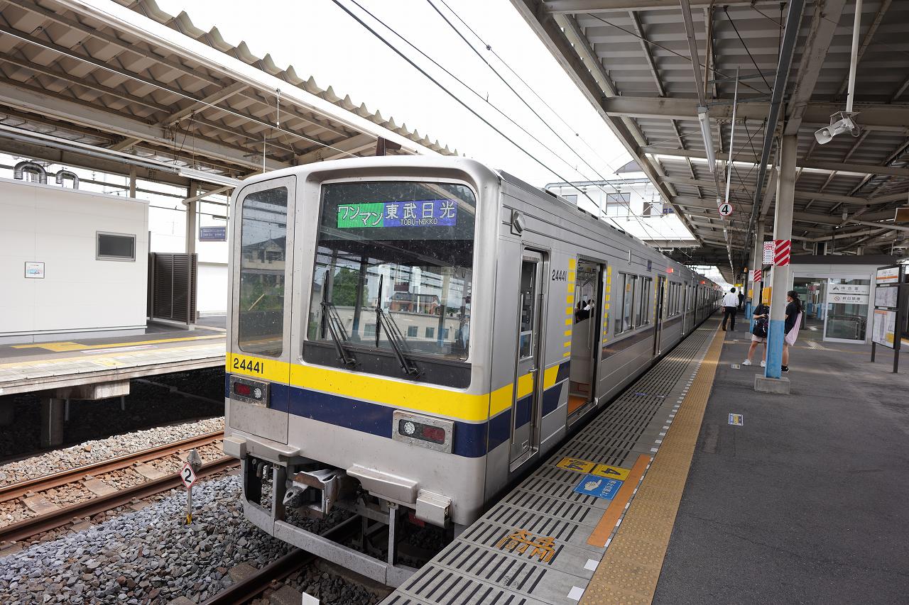各駅停車の東武日光行き。東武日光までは1時間半くらいで到着する列車です。こう考えると近いような感じもしますね。