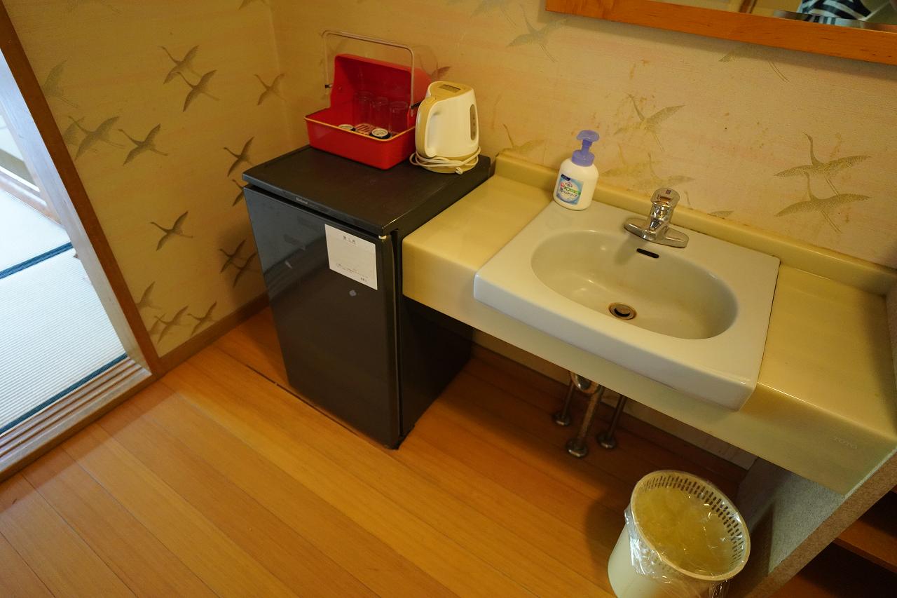 今回は新館の和室に宿泊。以前も新館でしたね。同じような感じでしたが、冷蔵庫の中が仕切りのないタイプで入れやすかったり。