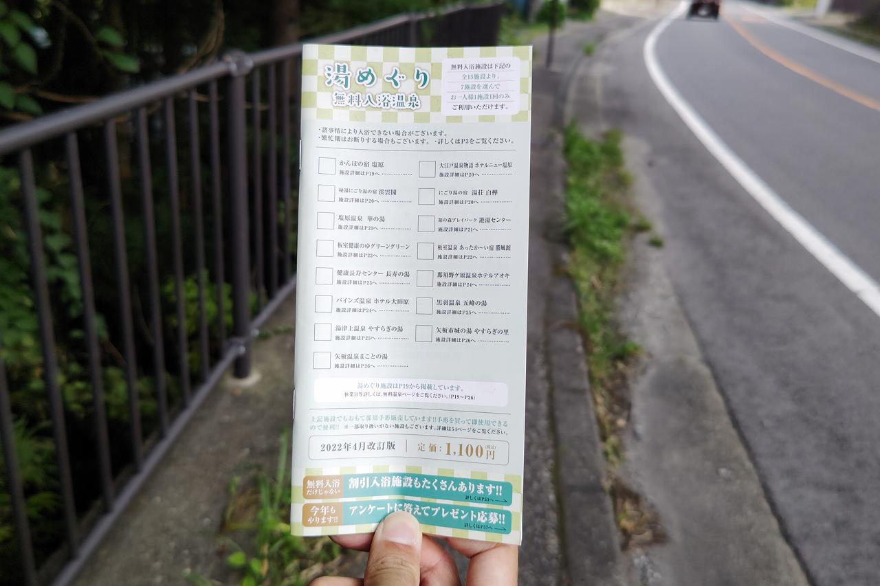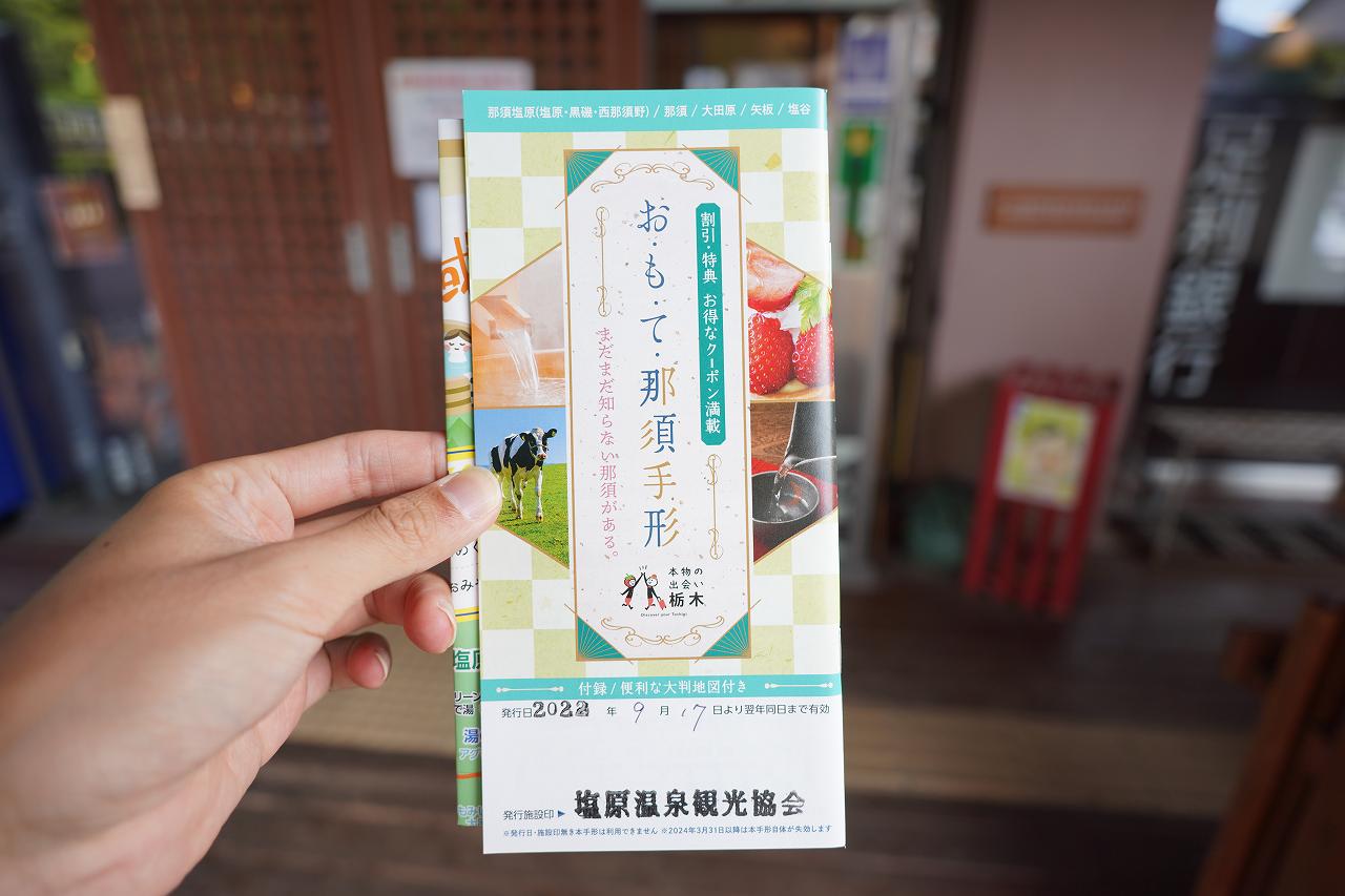 そしてここでの目的はこの「おもて那須手形」という1,100円冊子。色々クーポンが入っているようなのですが、目的は日帰り温泉が無料で入れる特典。地域クーポンで購入可能です。