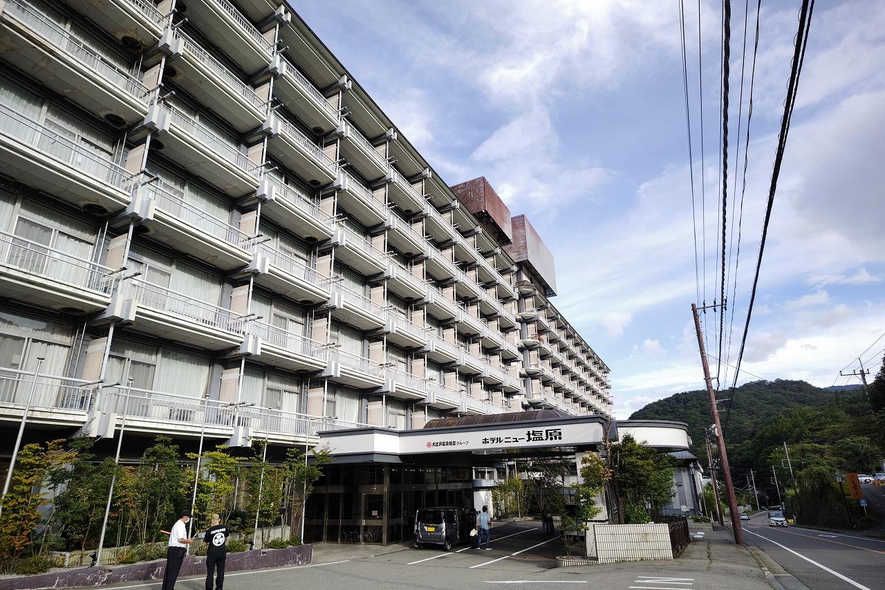 そして目的の「ニュー塩原」に到着。ここは元々岡部ホテルグループの宿でしたが、今では大江戸温泉物語が運営しています。ここに泊まろうとも思ったのですが、三連休で高かったのでやめたんですよね。