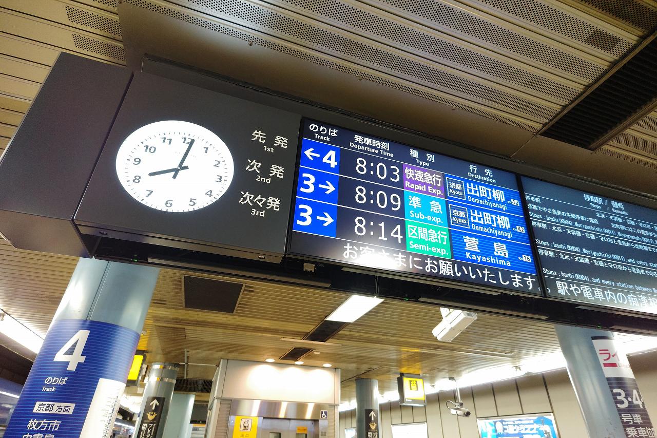 京阪には「快速急行」「特急」という速達種別があるのですが、一見ではどっちが速いのかはよくわかりません。とはいえ先に出る方に乗っておけば良さそうな気もしますが、