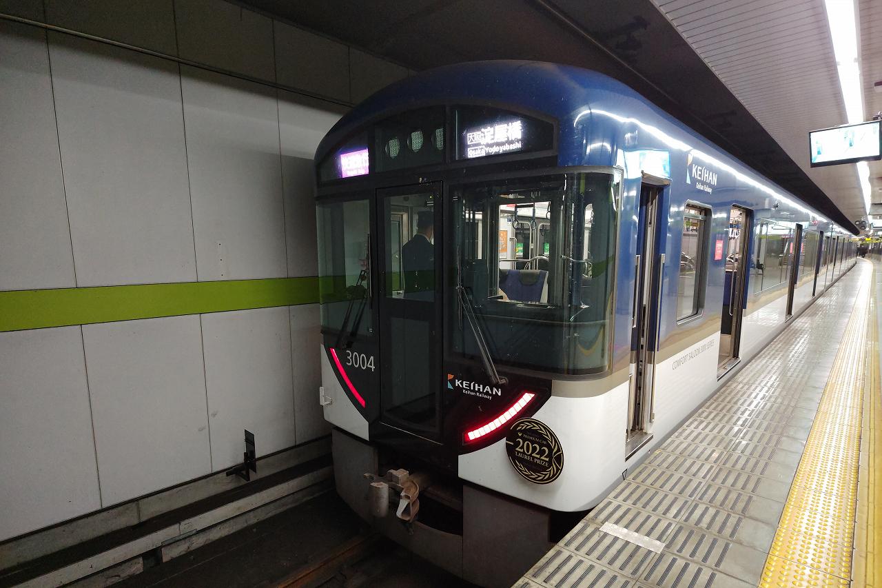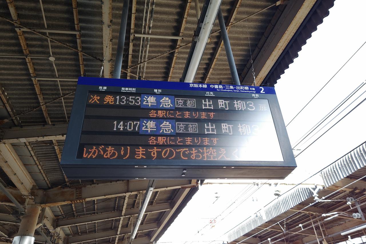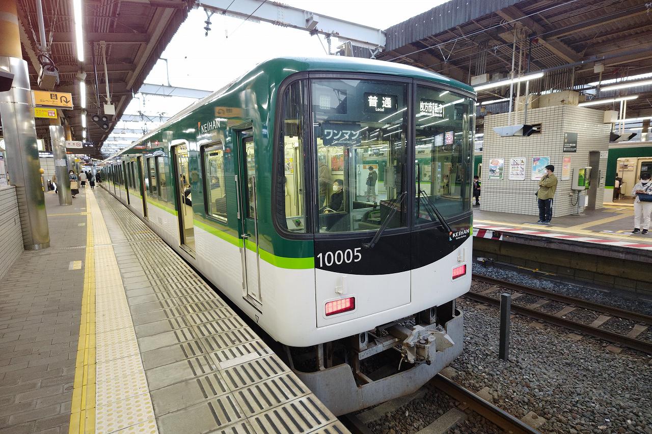 列車は初乗車でしょうか、京阪10000系でした。でも車内の雰囲気としては7000系も10000系も13000系も似た感じでどこに違いがあるのかあんまり良くわからなかったり。