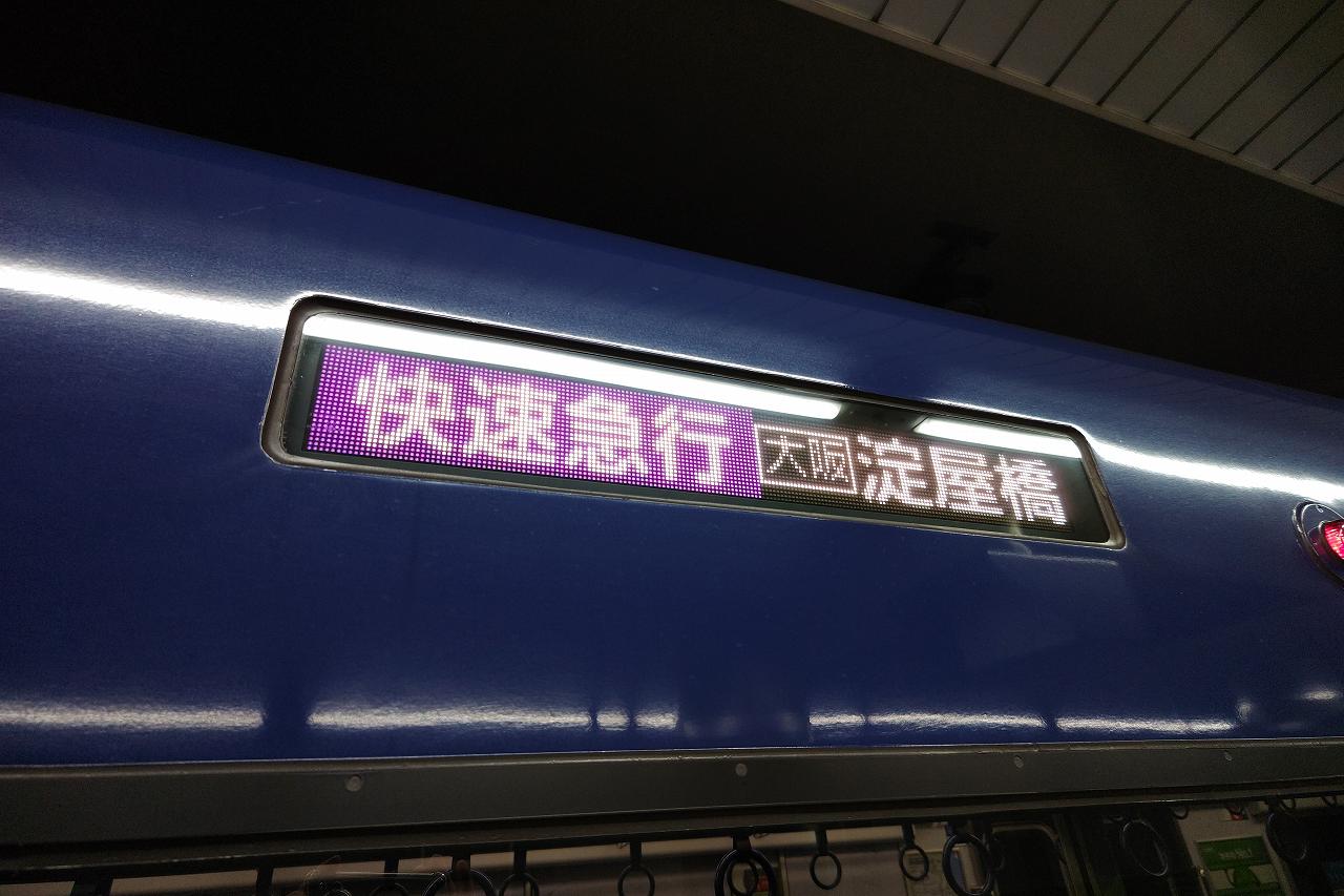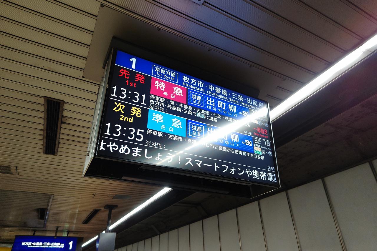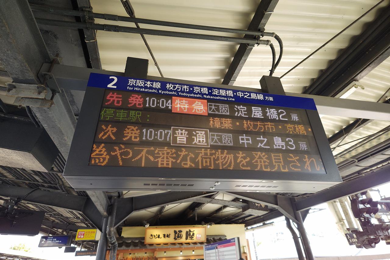 乗車するのは2本目の特急。上の快速特急は京都中心部を出ると京橋までノンストップなので枚方市も通過してしまいます。一度くらいは乗りたかったんですが、ちょっと時間的に乗ってから枚方市に戻るのは厳しそうです。