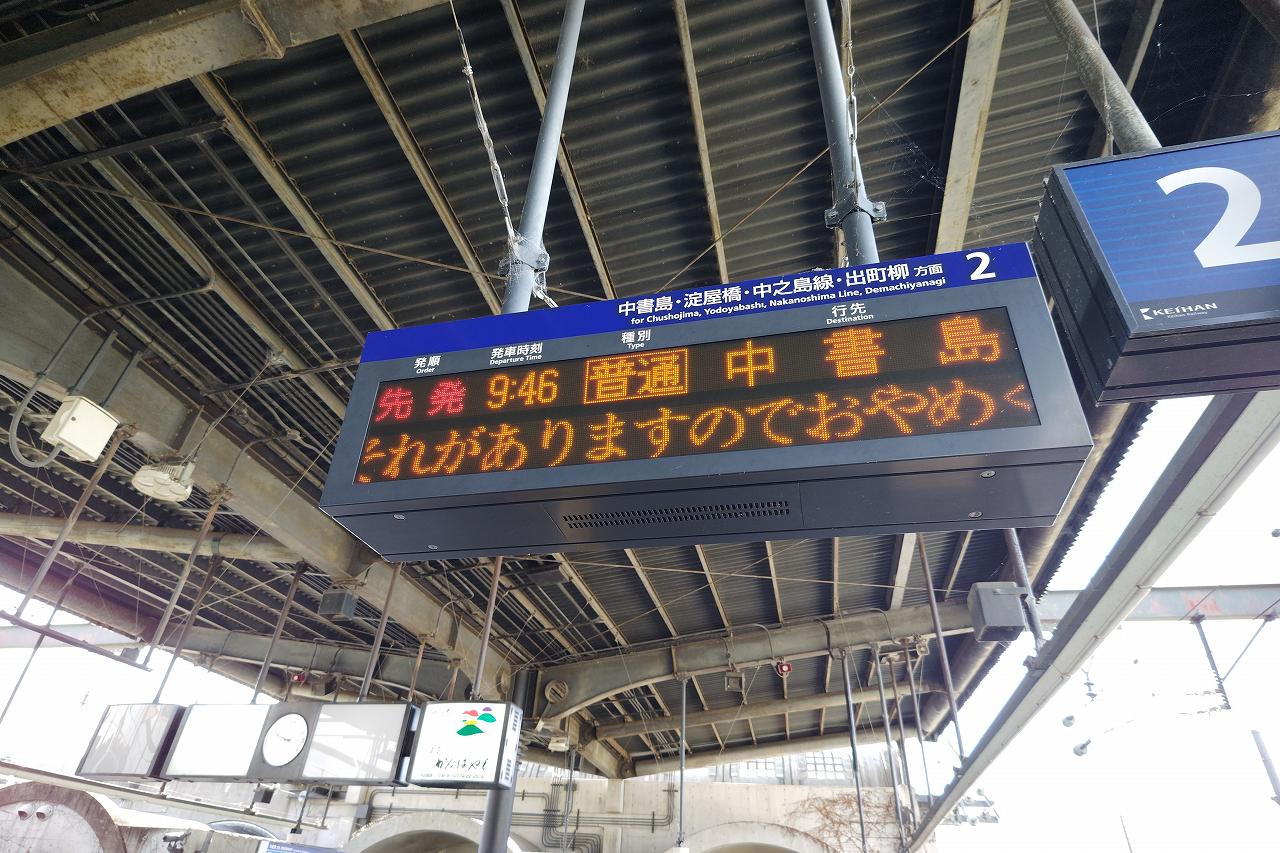 もういい加減言い方を覚えた中書島駅に戻ってきました。この先は一旦大阪市内まで戻って行って、中之島線に乗りに行きます。