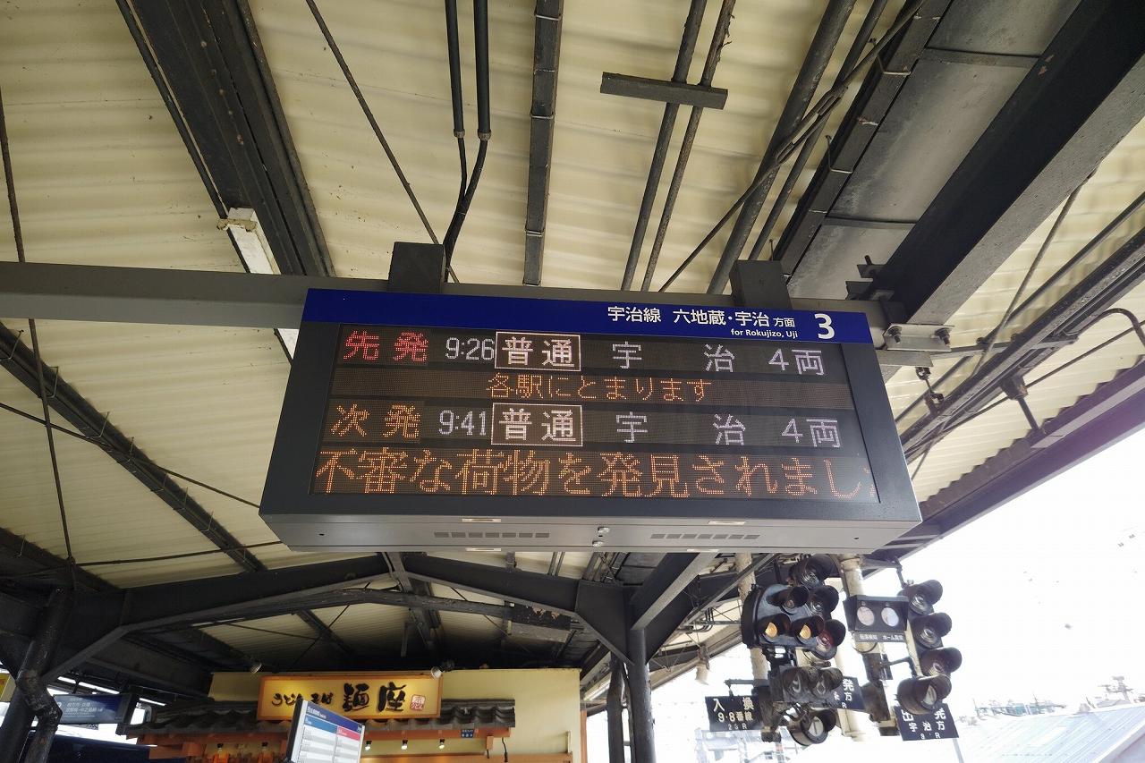 宇治駅に到着。抹茶アイスを食べることも無くそのまま折り返しで戻っていきます。今日は目的が乗ることなので、どんどん先に進んで行かないと……。