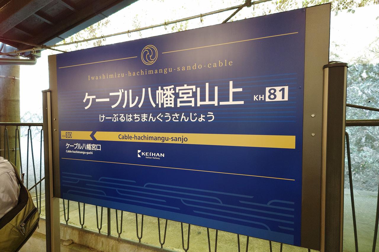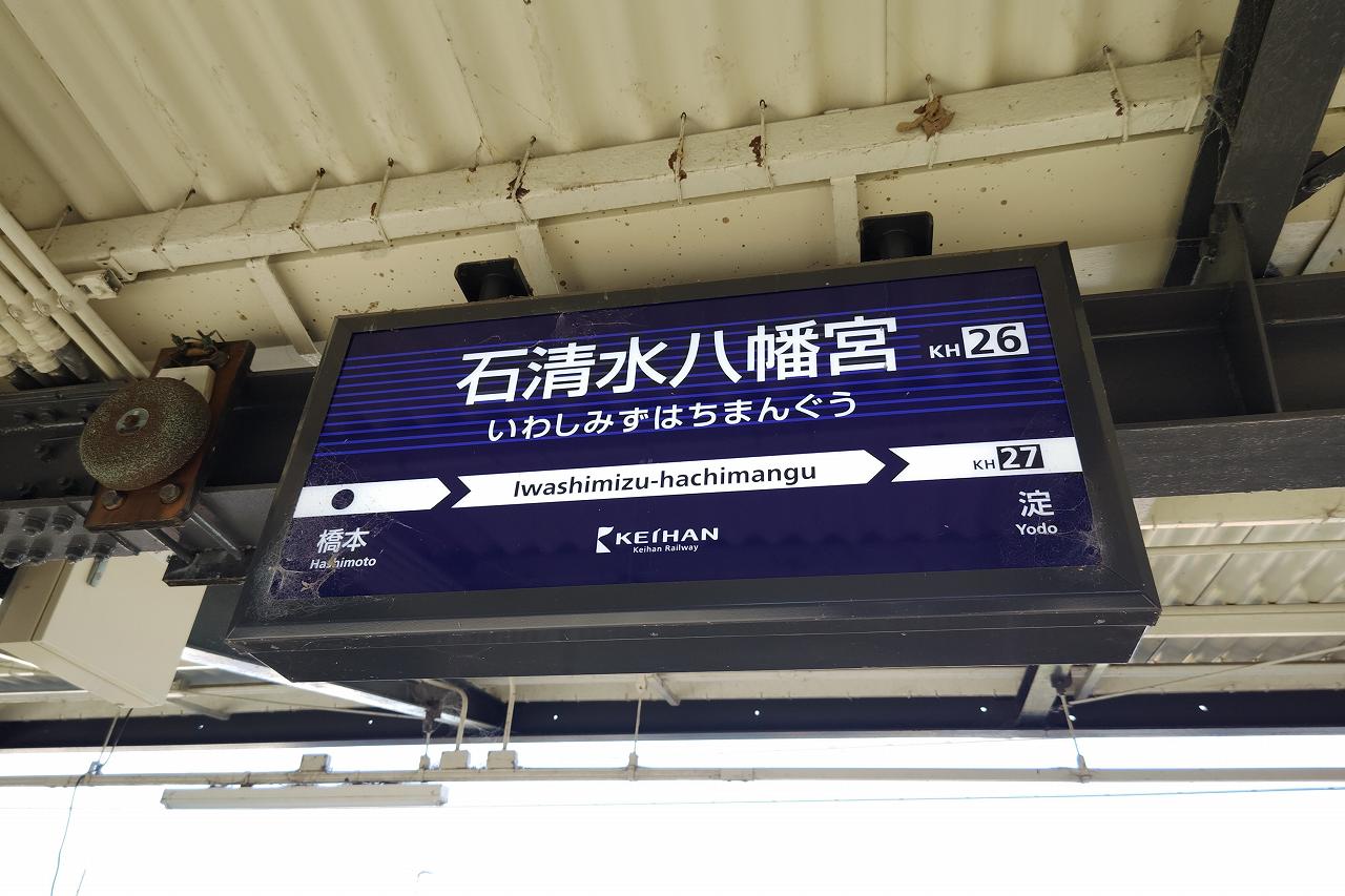 ケーブルカーのある石清水八幡宮駅は特急は通過駅なので、途中の枚方市で準急に乗り換えて向かいます。京阪の場合は「○駅で○○に接続」という案内を頻繁に流してくれるので、どこで乗り換えればいいのかを調べなくてもわかるのがありがたい。