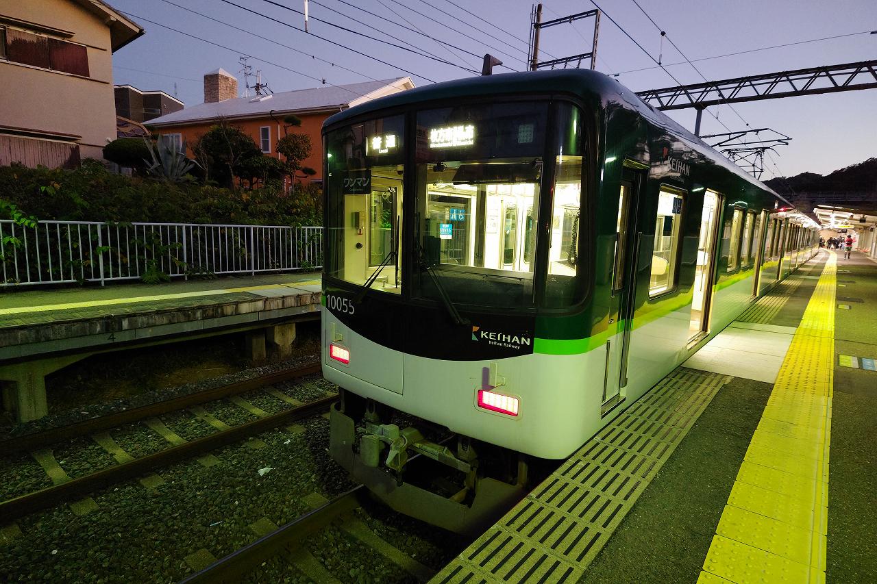 枚方市では結構明るかったのですが、もうこの時点ではかなりの暗さに。でももう新規の路線は今日は乗らないので、ここでこの夕暮れでちょうどいい時間配分だったのかもしれません。