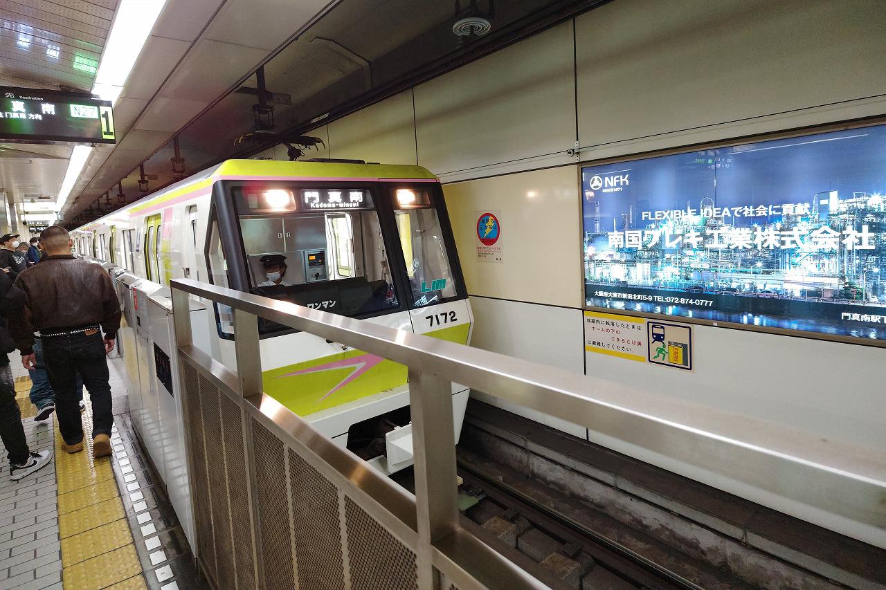 折り返しとなるのでまた門真南行き。同じ路線の行き来はやっぱり飽きてきてしまいますね。特に地下鉄だと景色も何もないので無心で乗ってしまうだけになりがちです。
