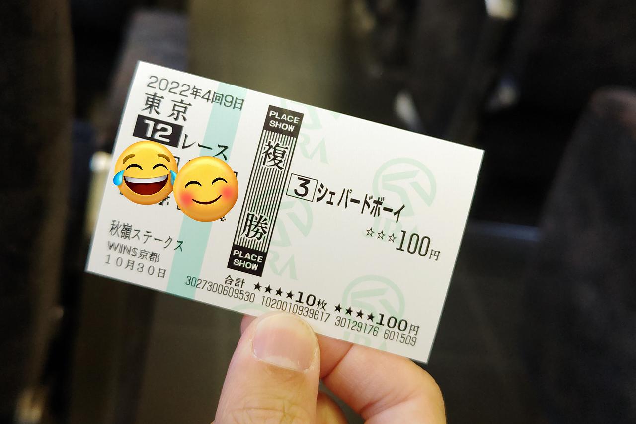 帰り道にふと見るとJRAの馬券売り場。なんかお土産のように公益ギャンブルの券を買っているのですが、適当に100円分買っていきましょうかね。