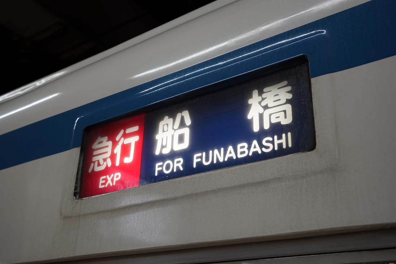 急行|船橋の幕。幕車のがシャッター速度に影響しないで写真が撮れるので、スマートフォンなどでは撮りやすいとは思います。