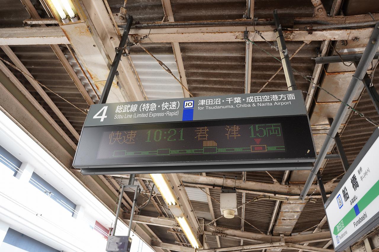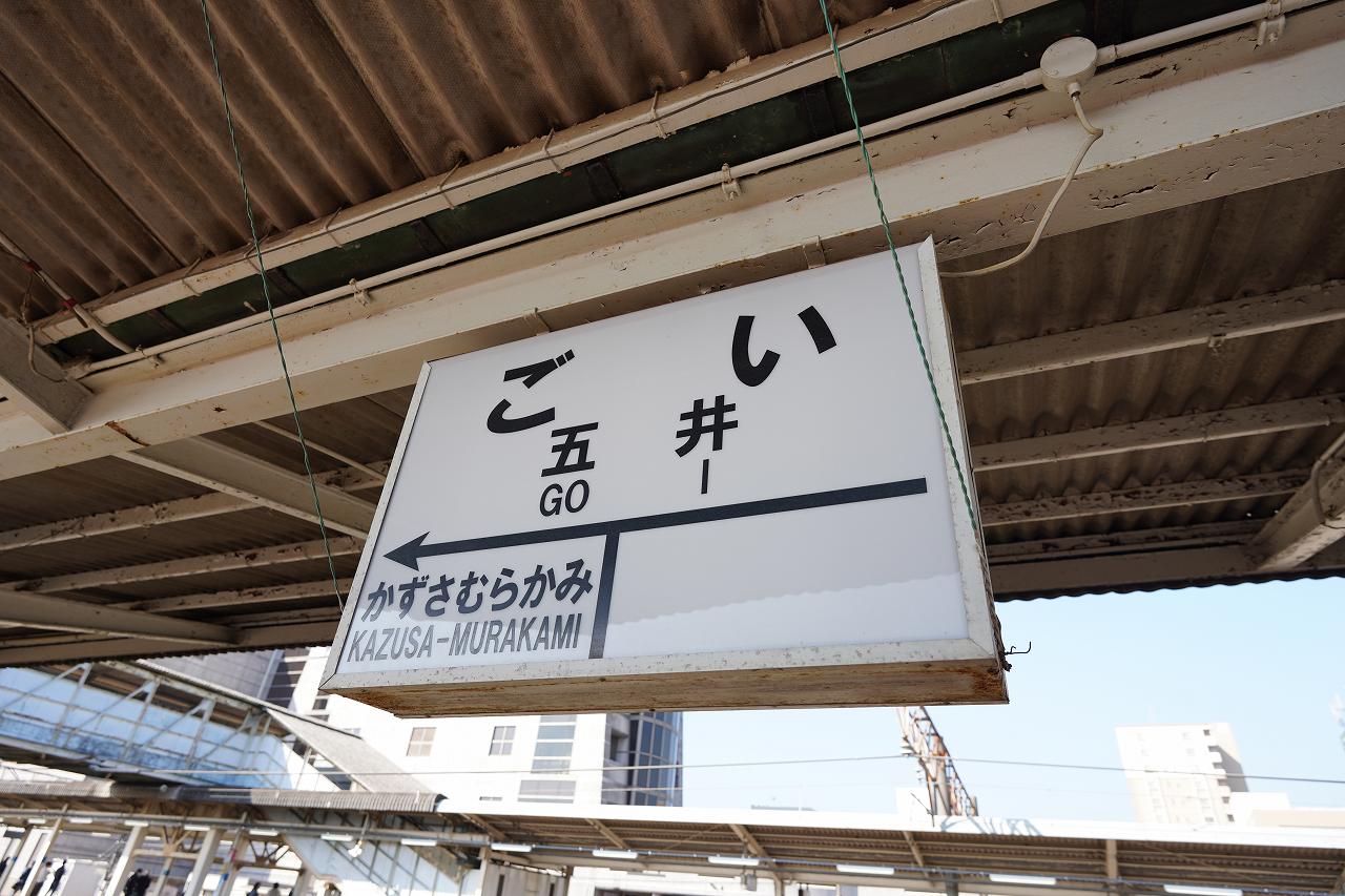 船橋駅に到着しました。ここからはJRに乗り換えて房総半島へ向かいます。乗換駅の五井駅は内房線の駅。あんまり本数は無いですが、直通列車に乗ると楽に向かうことができます。