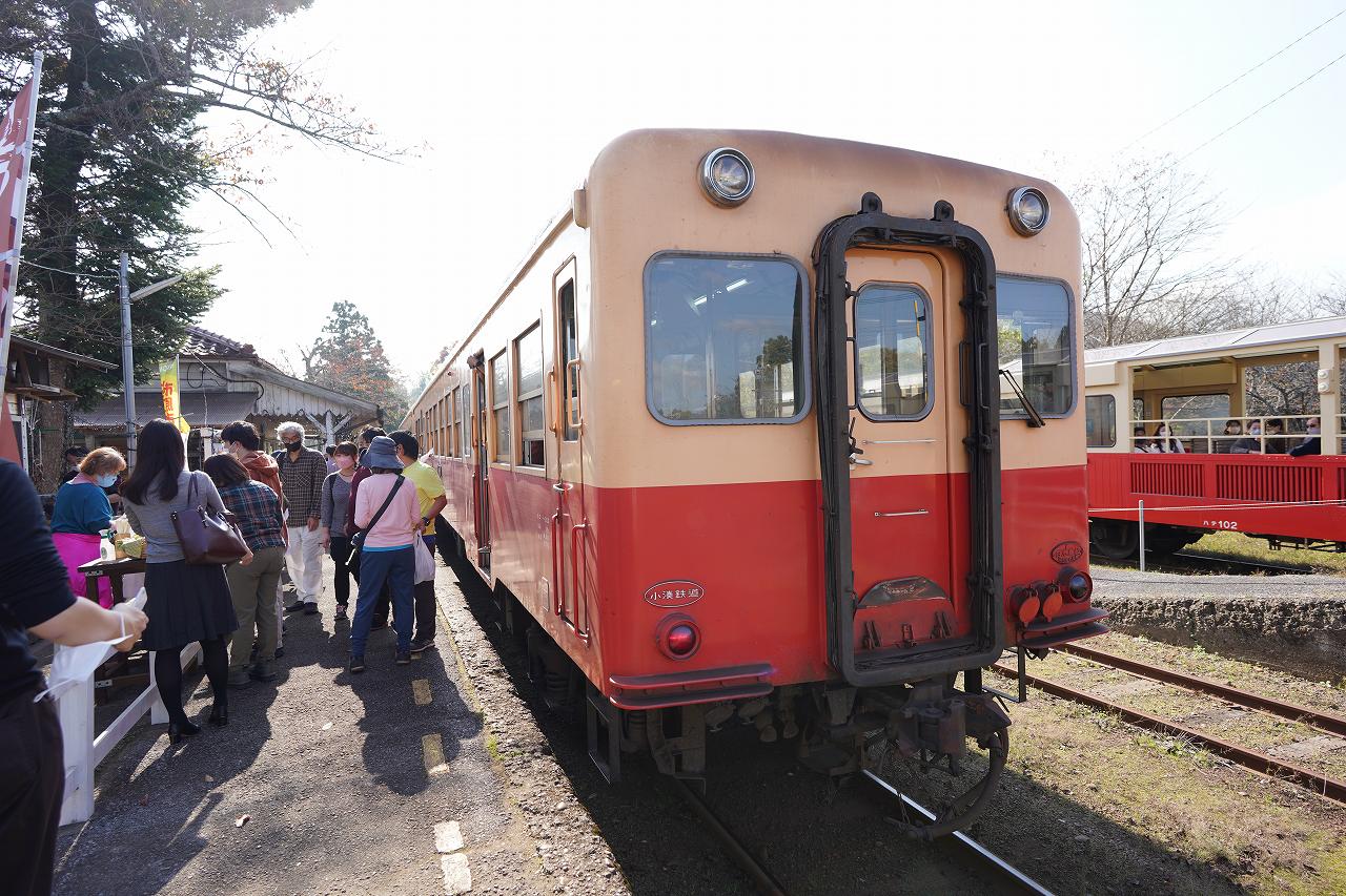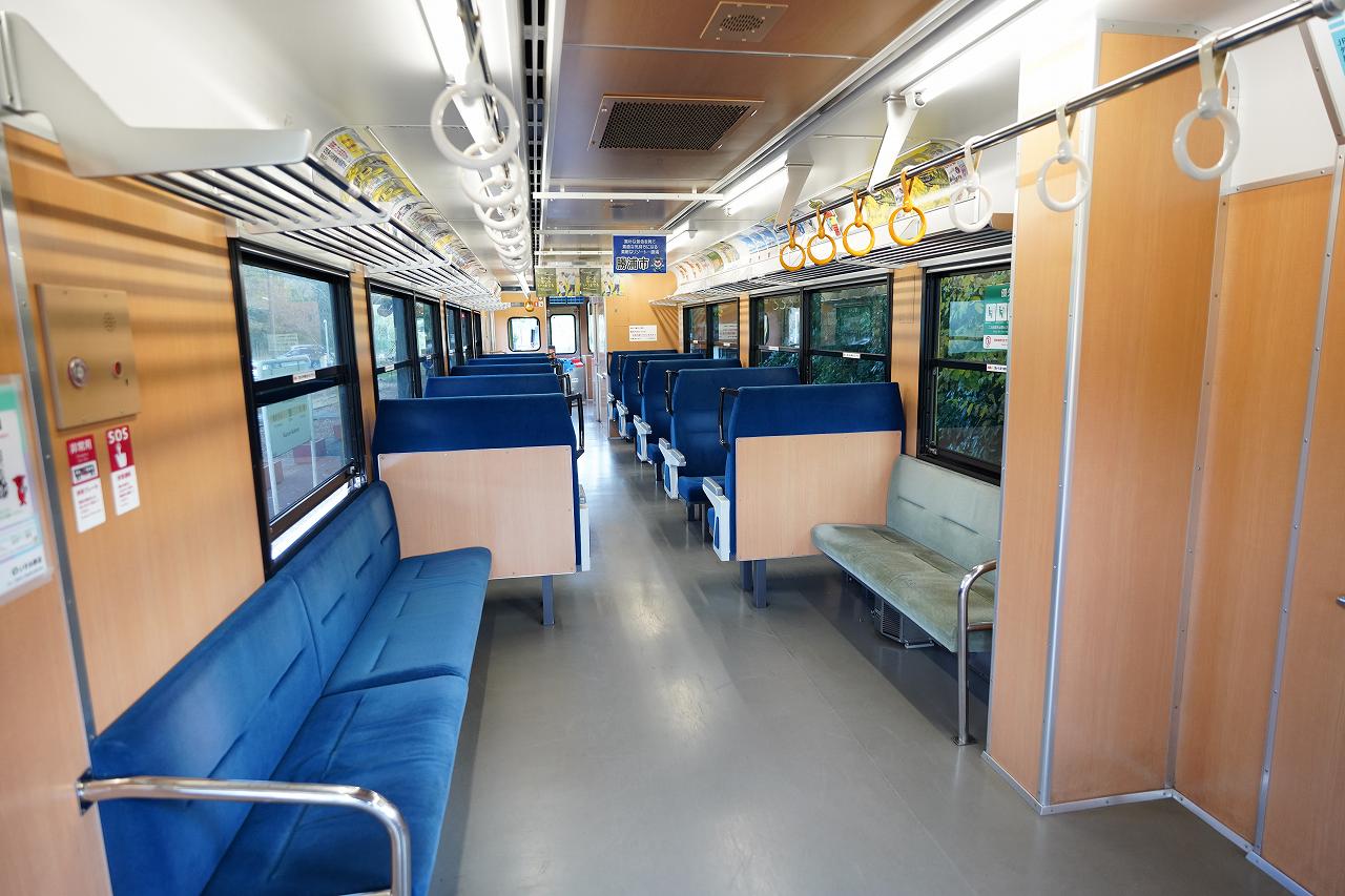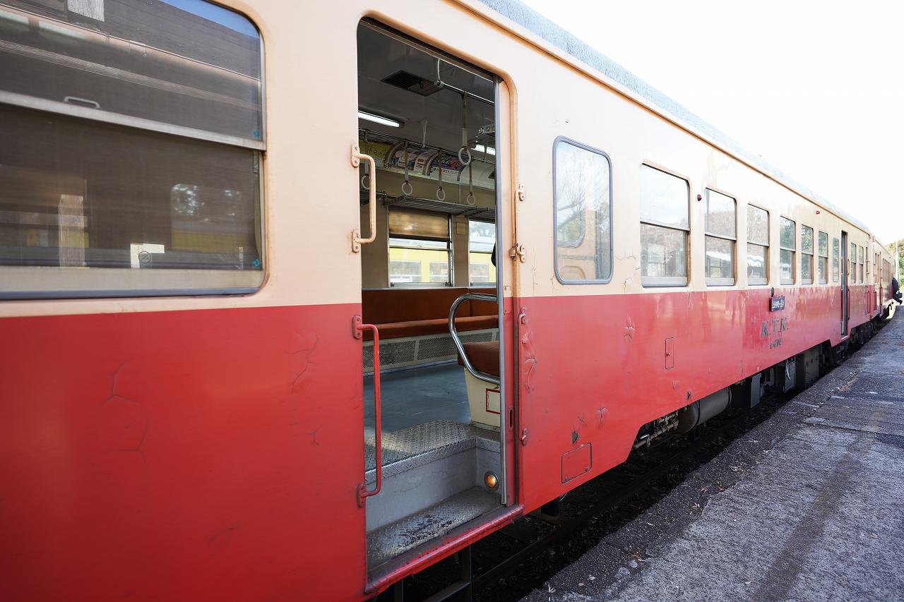 車両側面には「K.T.K」という文字が。これは「Kominato Tetsudo K.K.」の略称となっています。以前は一部非冷房車もあったようですが、今では全車が冷房対応となっているので夏場でも安心です。