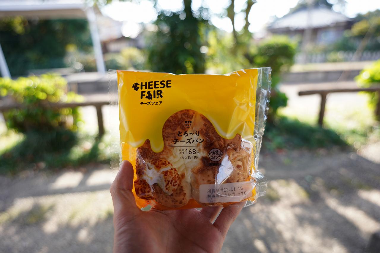 前から気になっていたローソンのチーズパンと、先ほど里見駅で購入したいなりすしを昼食にいただきます。駅前にコンビニなどは無いので、食べたいならあらかじめ用意してきましょう。