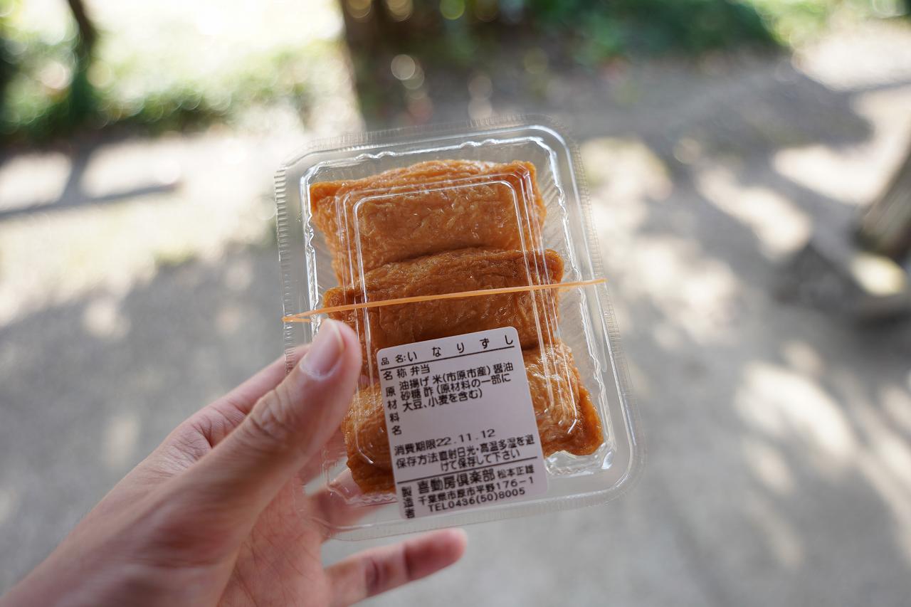 生しいたけとかはさすがに持って帰るのが面倒でしたが、コンビニで買った昼食の足しにといなりを購入。値段も良心的なので、昼食をここで買うと決めてくるのも良いかも。