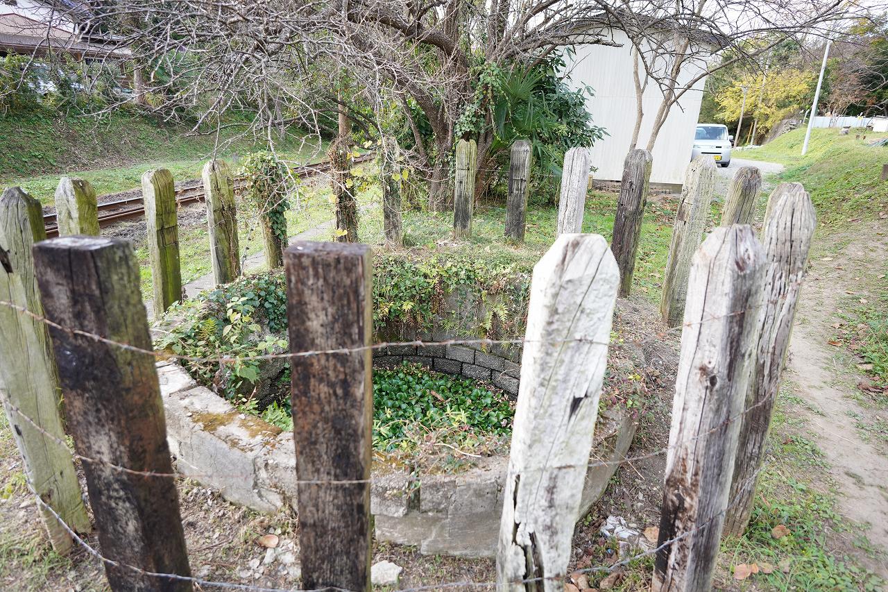 線路の脇に囲われた部分があり、そこが蒸気機関車の井戸跡らしい。駅の地図には書いてある割には、現地には何も案内看板もないのがちょっと残念。当時の写真などがあれば良かったんですけどね。