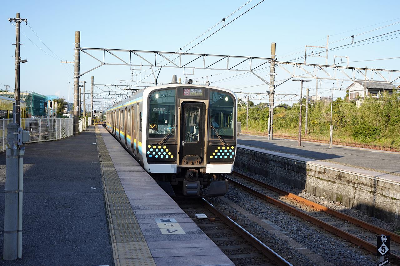 五井までは40分の乗車。E217系がやってくることを期待して、9、10号車辺りに待機して待つことに。