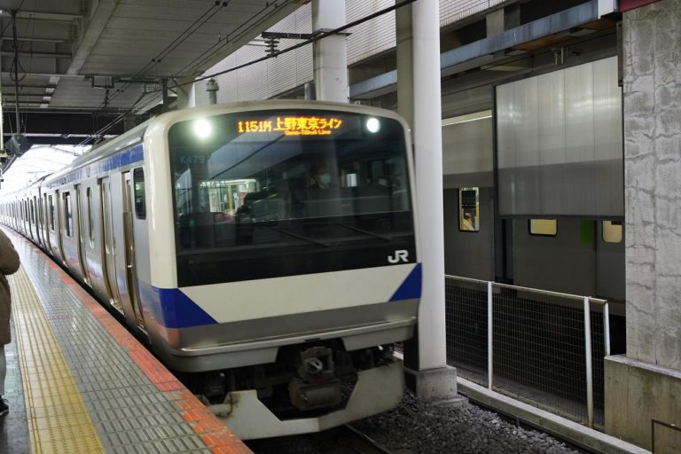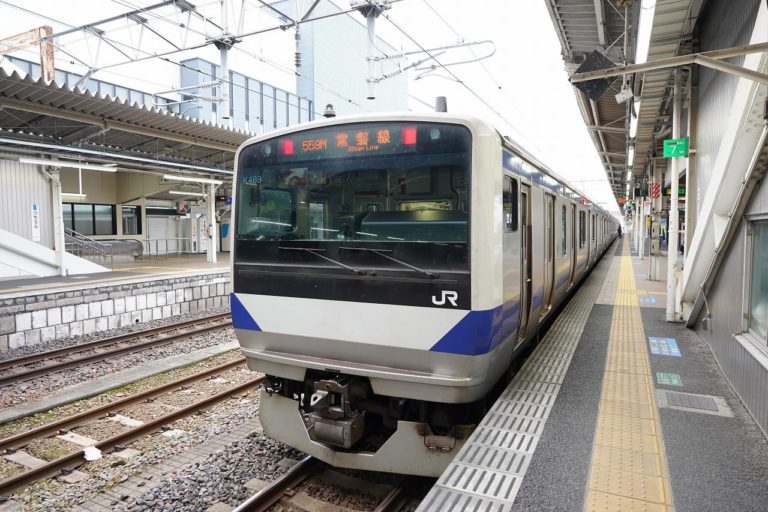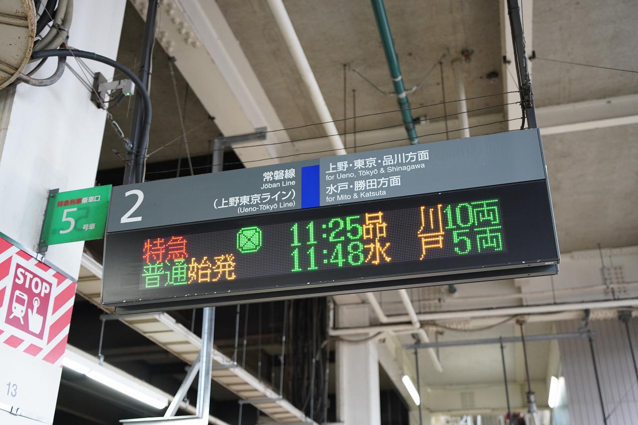 車両は先ほどと同じE531系ですが、こちらにはグリーン車にはついていません。この区間では都心からの有り列車と区間運転の無し列車が混在しているので駅案内では注意がされています。