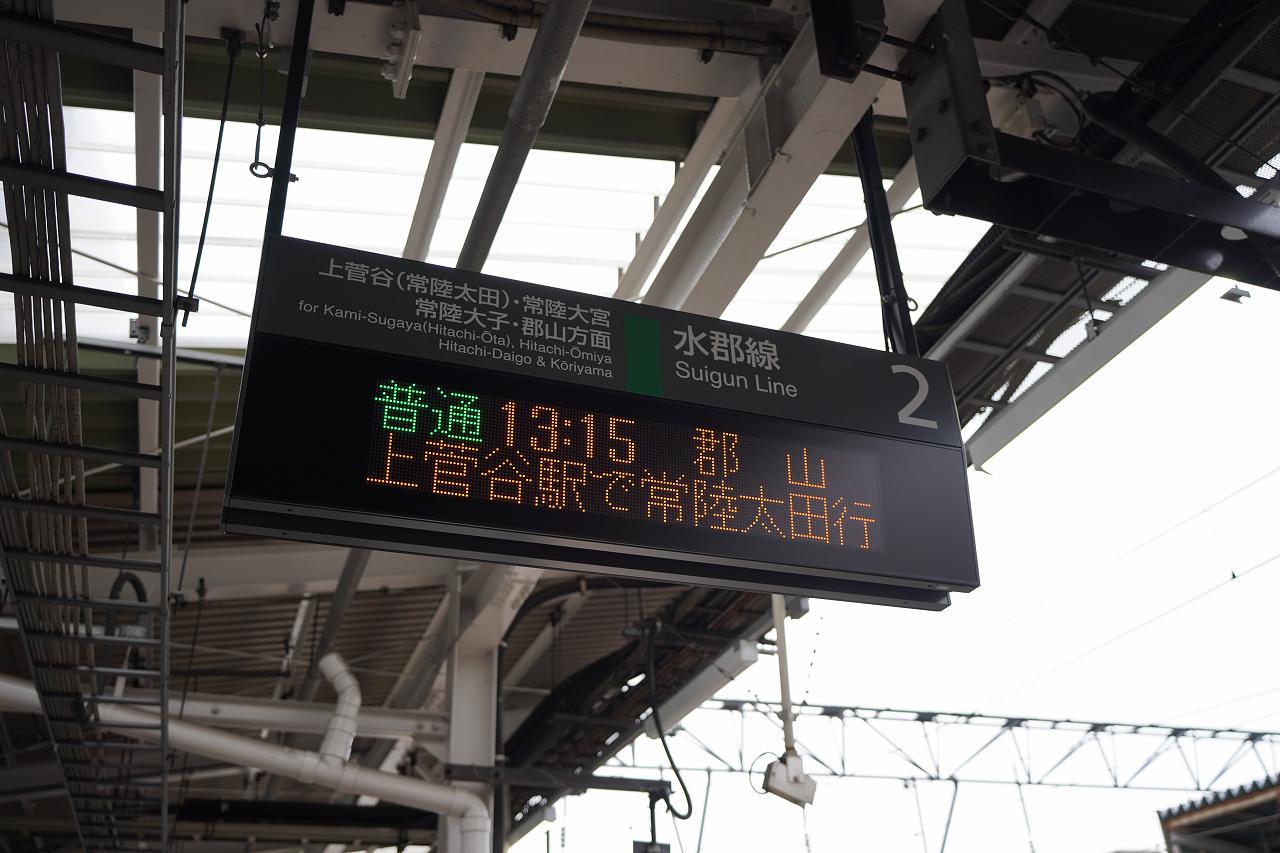 水戸駅に到着。ここから先は常磐線を離れて、郡山へと向かう路線「水郡線」に乗車します。常磐線と東北本線を結ぶ路線としてはこの水郡線と磐越東線がありますが、どっちも本数が少ない……。