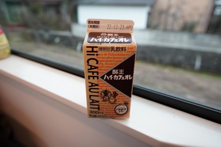 水戸駅では満員御礼状態だった車内も、どんどん人が降りて行ってのんびりした空間に。ということで水戸駅で購入していた酪王のハイカフェオレを飲んでみることに。