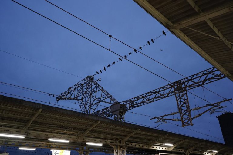 頭上を見上げるとカラスがたくさん。ムクドリとかなら見かけますが、これだけカラスがたくさん止まっているとちょっと怖い感じもします……。