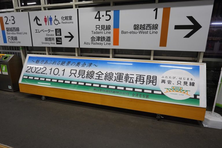 そして会津若松駅といえば只見線です。2022年10月に運転再開されたことの記念ポスターが2か月たった今でも掲示されていました。