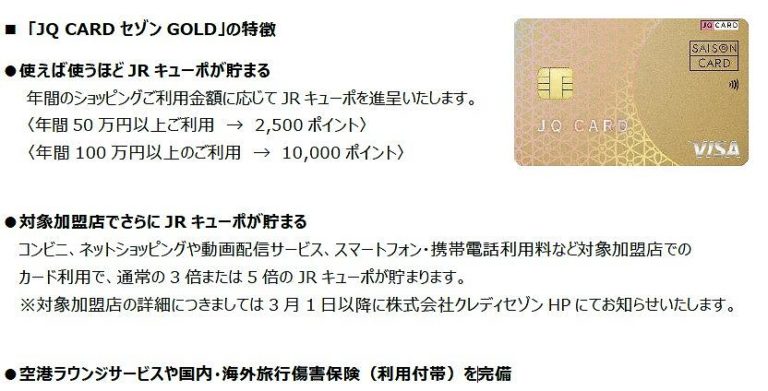 セゾンカードもセゾンカードとしてはゴールドカードを発行していますが、JR九州提携カードでは設定がなかったため、エポスカードに遅れを取っていました。