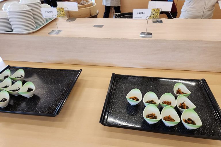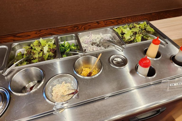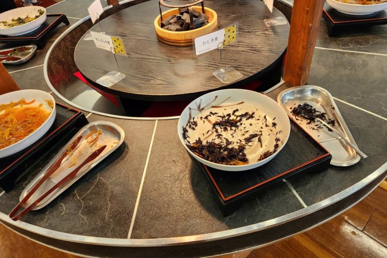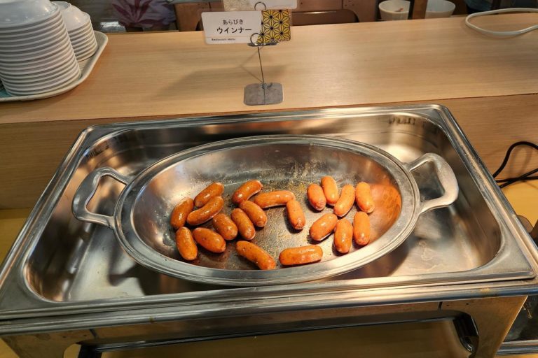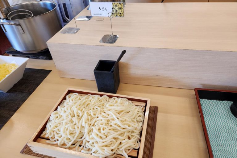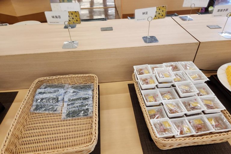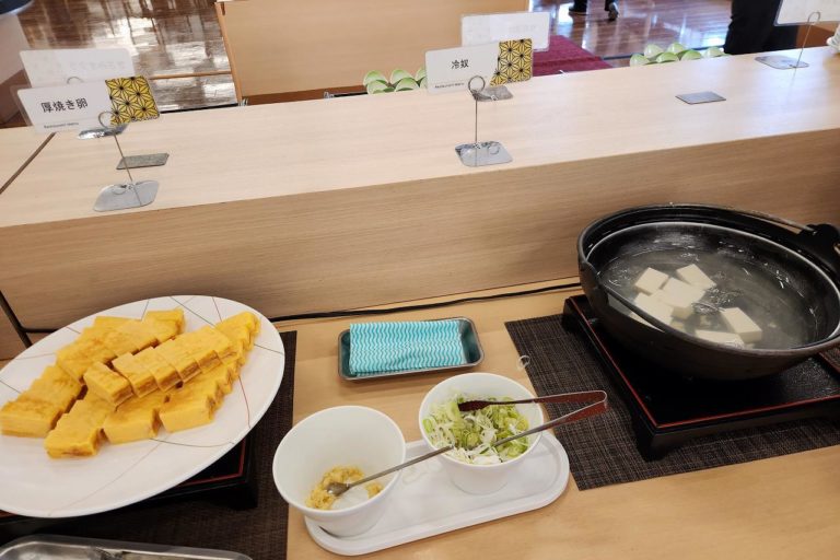 昨晩はラーメンとそばがあった麺コーナー。朝はシンプルにうどんだけが用意されていました。朝食にうどんがあるのは香川県みたいな雰囲気。
