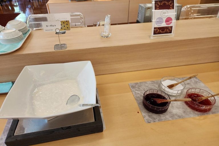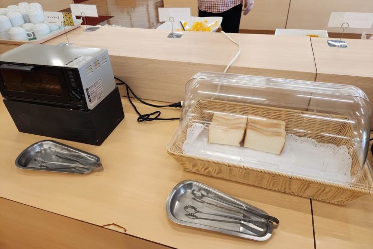 パンは胚芽ロールと食パンがありました。ジャムなども色々用意されているので、お好みで乗せて食べましょう。
