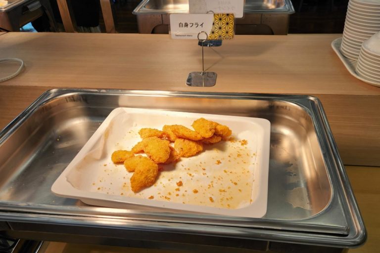 ここからは洋食コーナー。白身フライにフライドポテト。