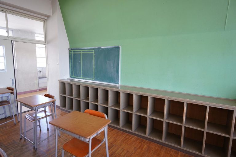 昔こういう所にランドセルを入れてましたね。棚の上には本とか観葉植物とかも置いてあったような記憶があります。また、教室にはストーブはあるので、寒いというのには対応できます。しかしエアコンが無いので夏などは熱さを覚悟した方が良さそうです。