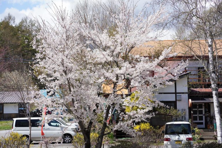 東京ではとっくに散った桜ですが、この辺りでは今が満開という具合で桜を2度見られました。標高が高くて気温も低いので、関東より西でも開花が遅いんですね。
